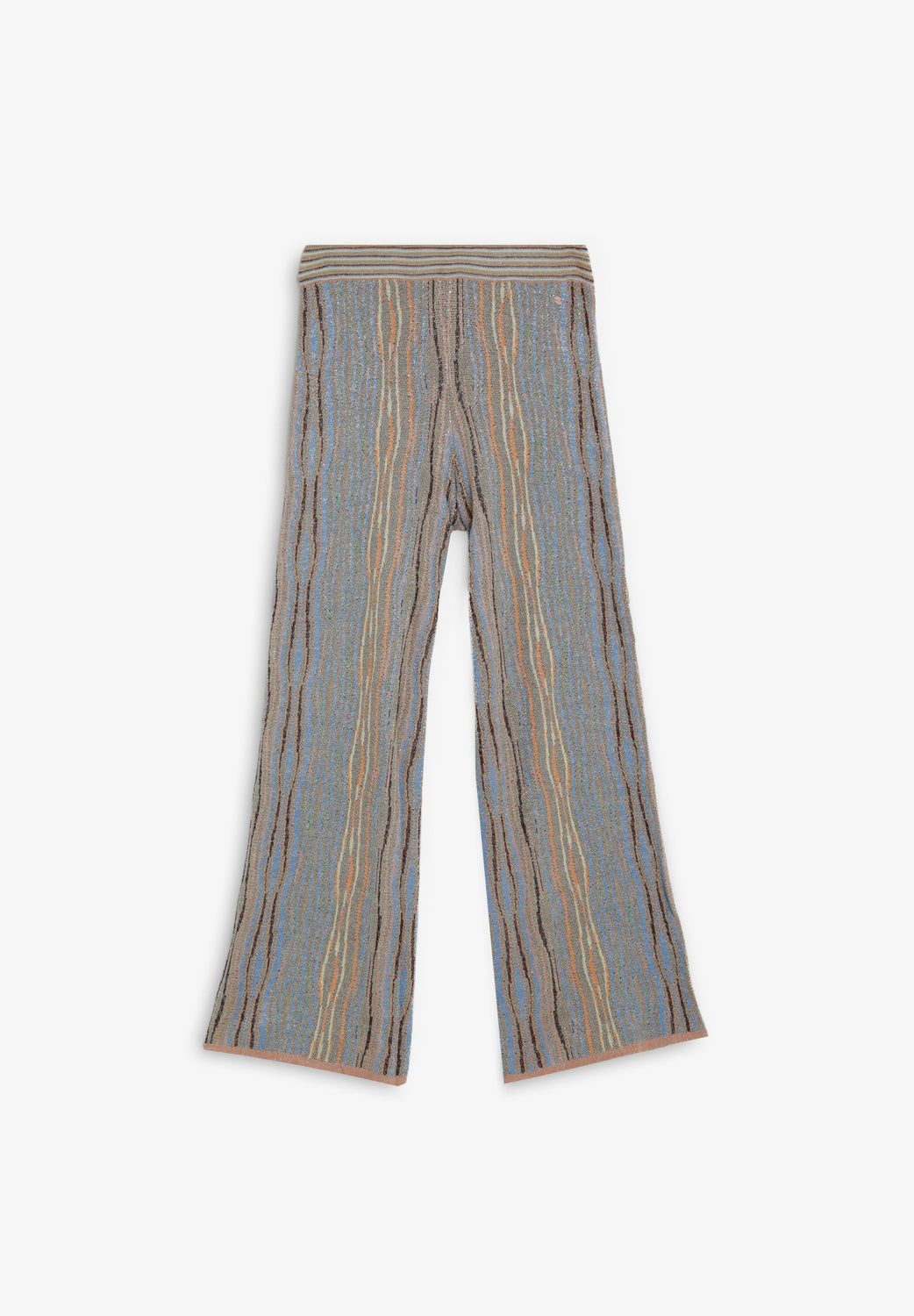 Trousers made of knit fabric with metallic thread. Regular fit. Elasticated waistband. Multicoloured zigzag print.