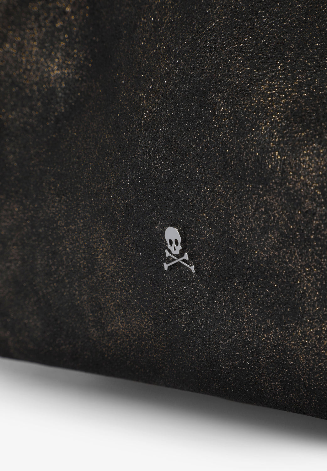 Metallic tote bag made of cotton with worn effect. Inner lining with zipped pocket. Removable matching clutch. Magnetic button fastening. Front logo detail.