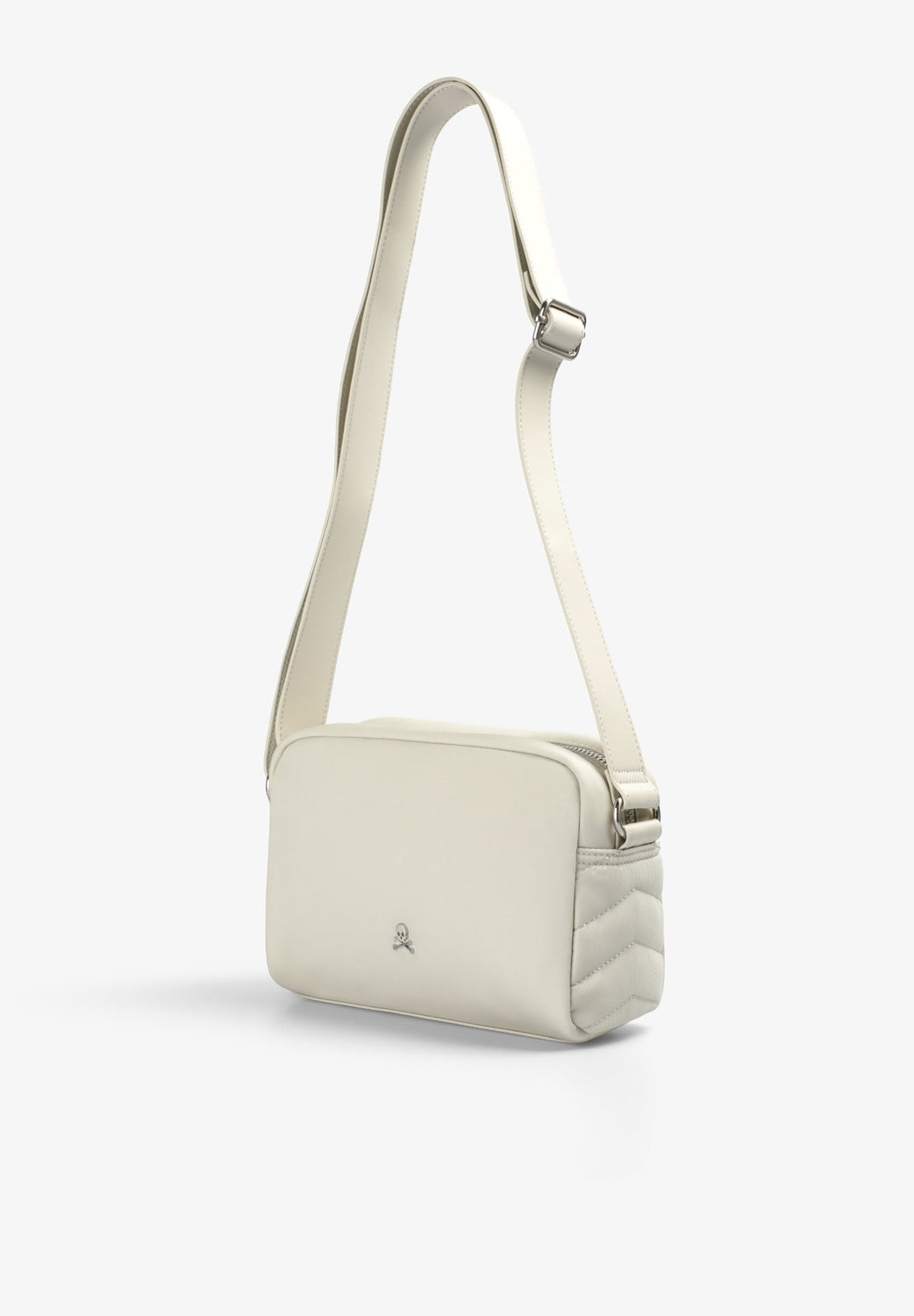 Quilted crossbody bag. Zip fastening. Long adjustable strap. Metal patch detail with logo on the front. Inner lining and zipped pocket.