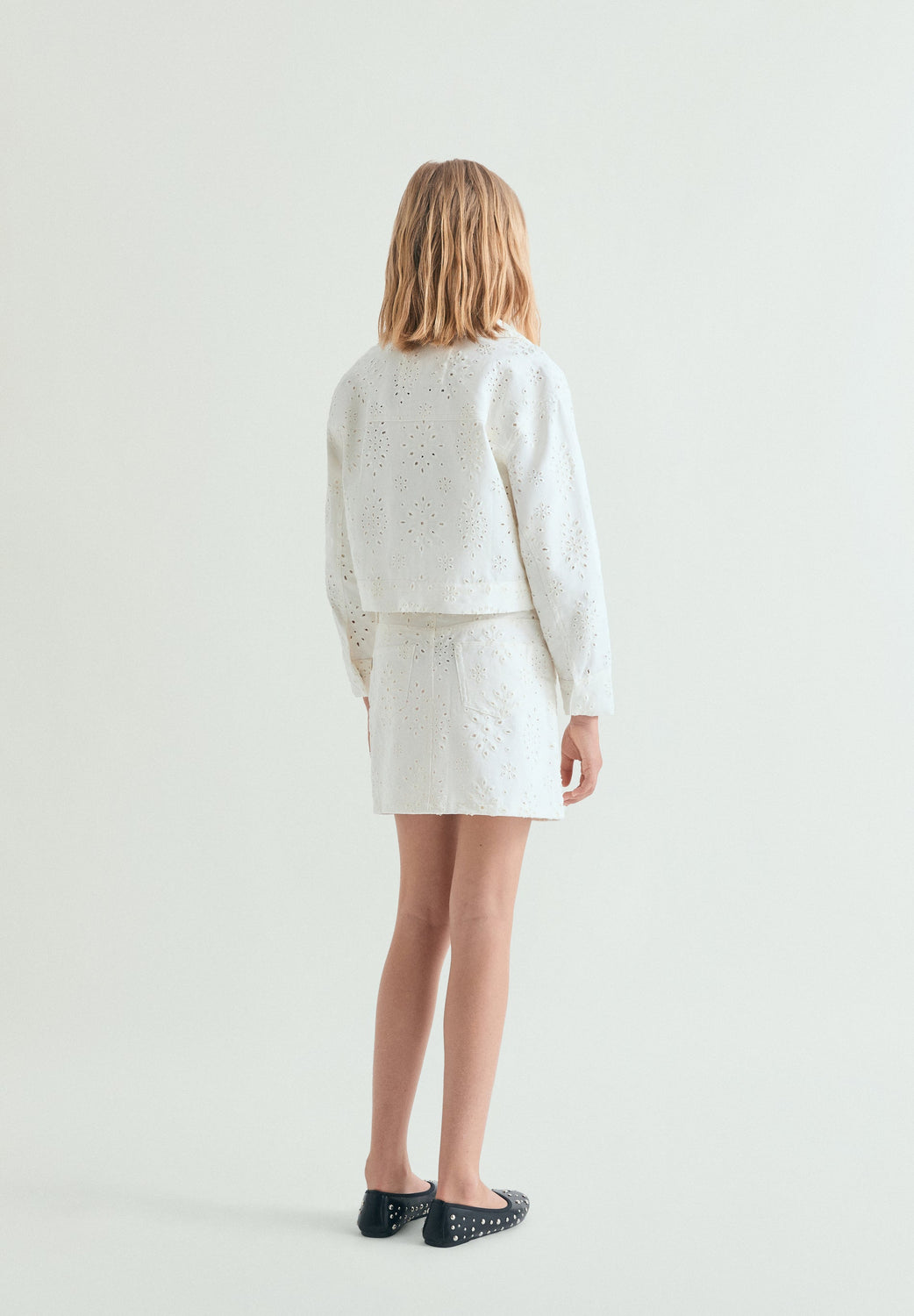Mini skirt made of 100% BCI cotton. Perforated fabric. Slim fit. 5 pockets.