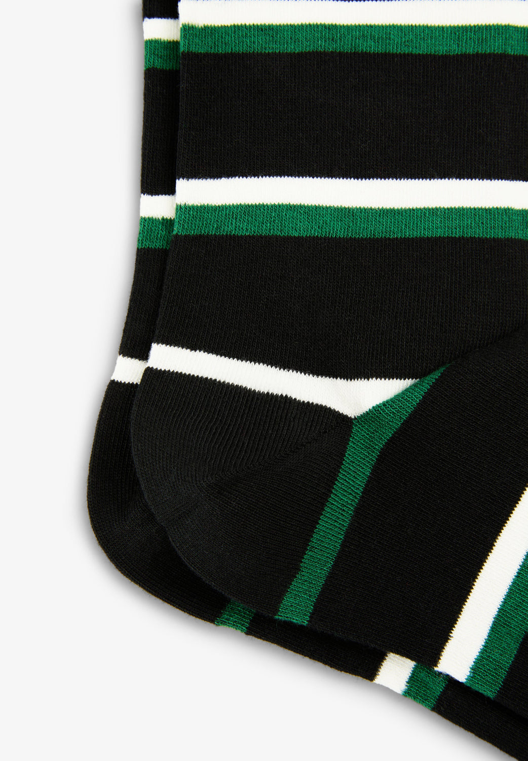 Ribbed socks made of an organic cotton blend. Contrast stripe print. Embroidered logo detail on the leg. Made in Portugal.