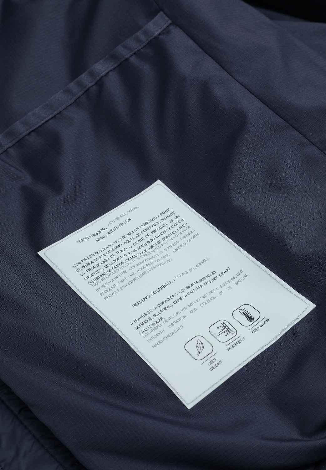 Puffer jacket made of recycled nylon. Regular fit, high collar and double slider zip fastening. Long sleeves with cuffs. Side pockets. Rubberised skull.