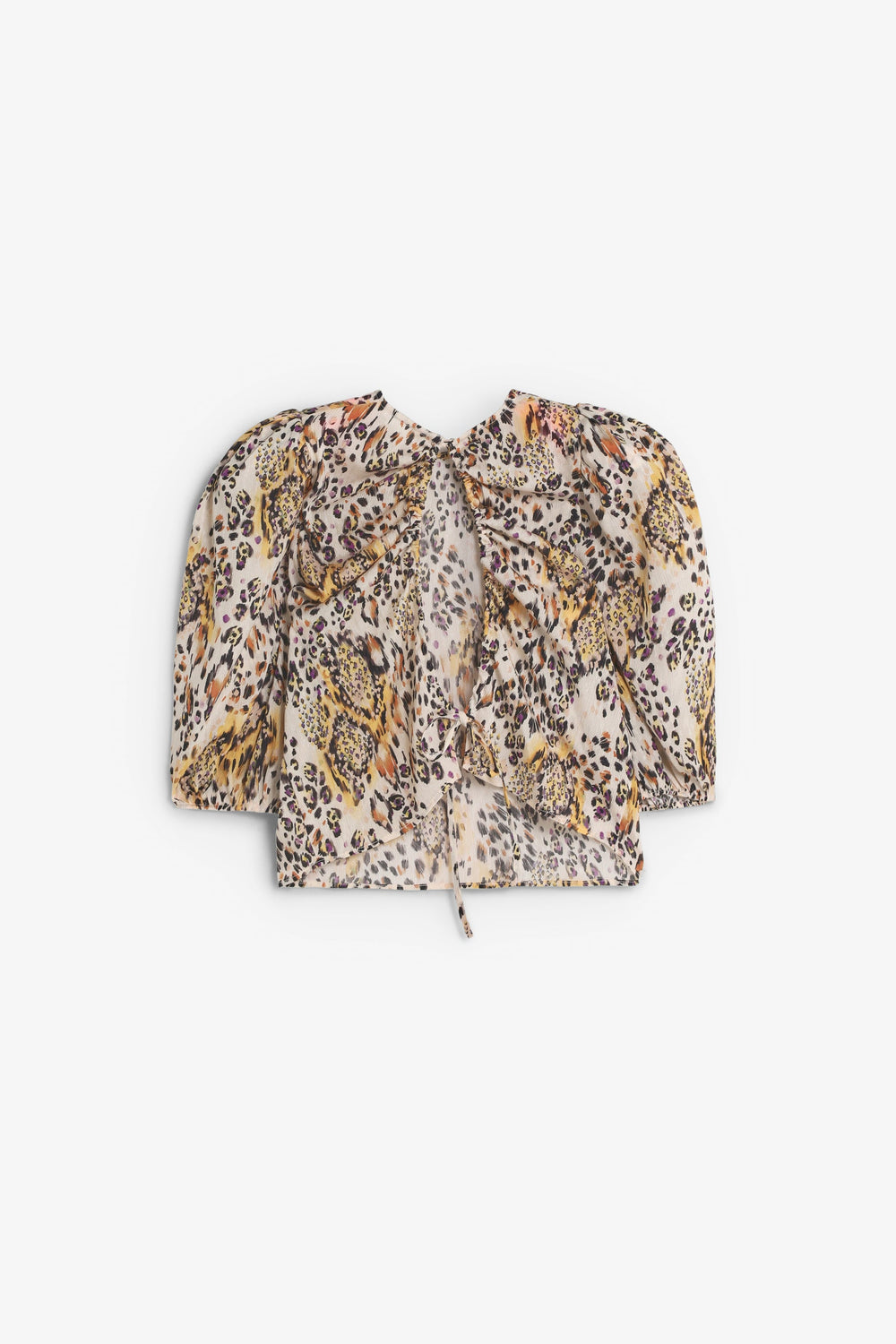 Animal print top. Round neck and short slightly puffed sleeves. Lace-up fastening at back.