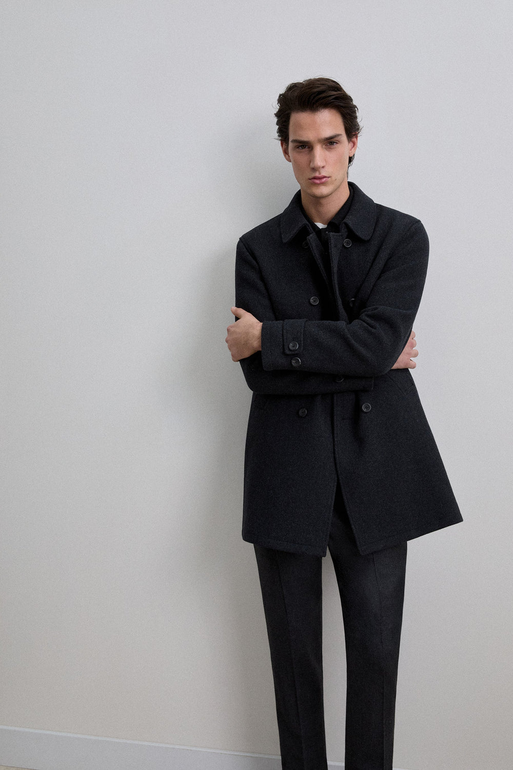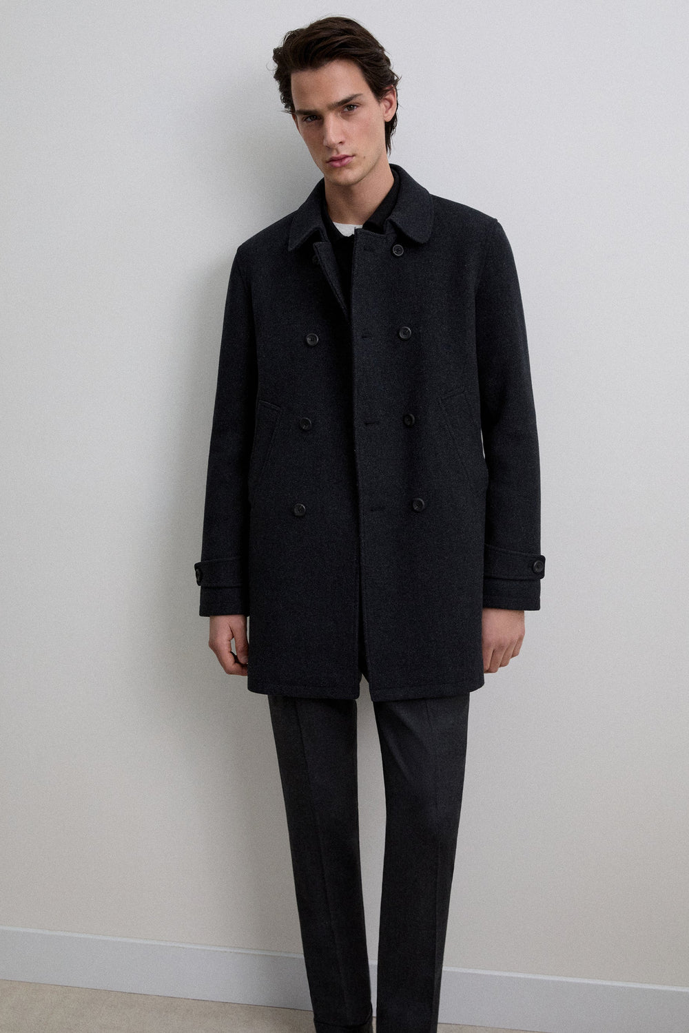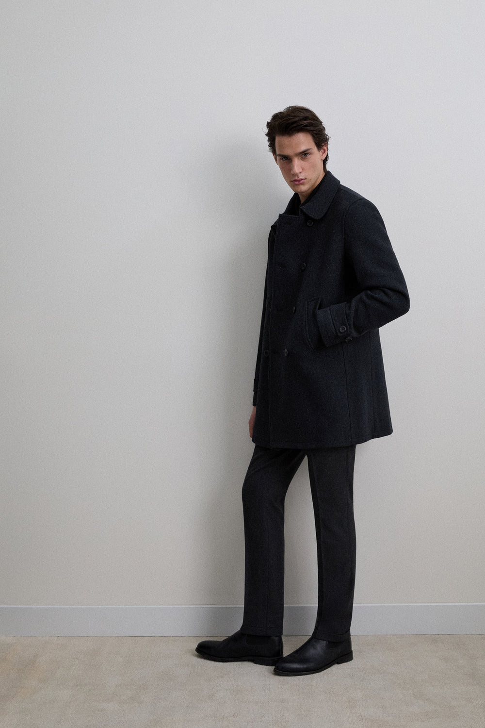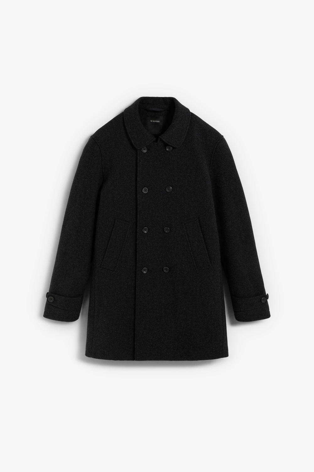 Double-breasted jas gemaakt van wolmix. Knoopsluiting aan de voorkant. Schuine paspelzakken aan de voorkant. Binnenzak. Manchetten met riemlussen.