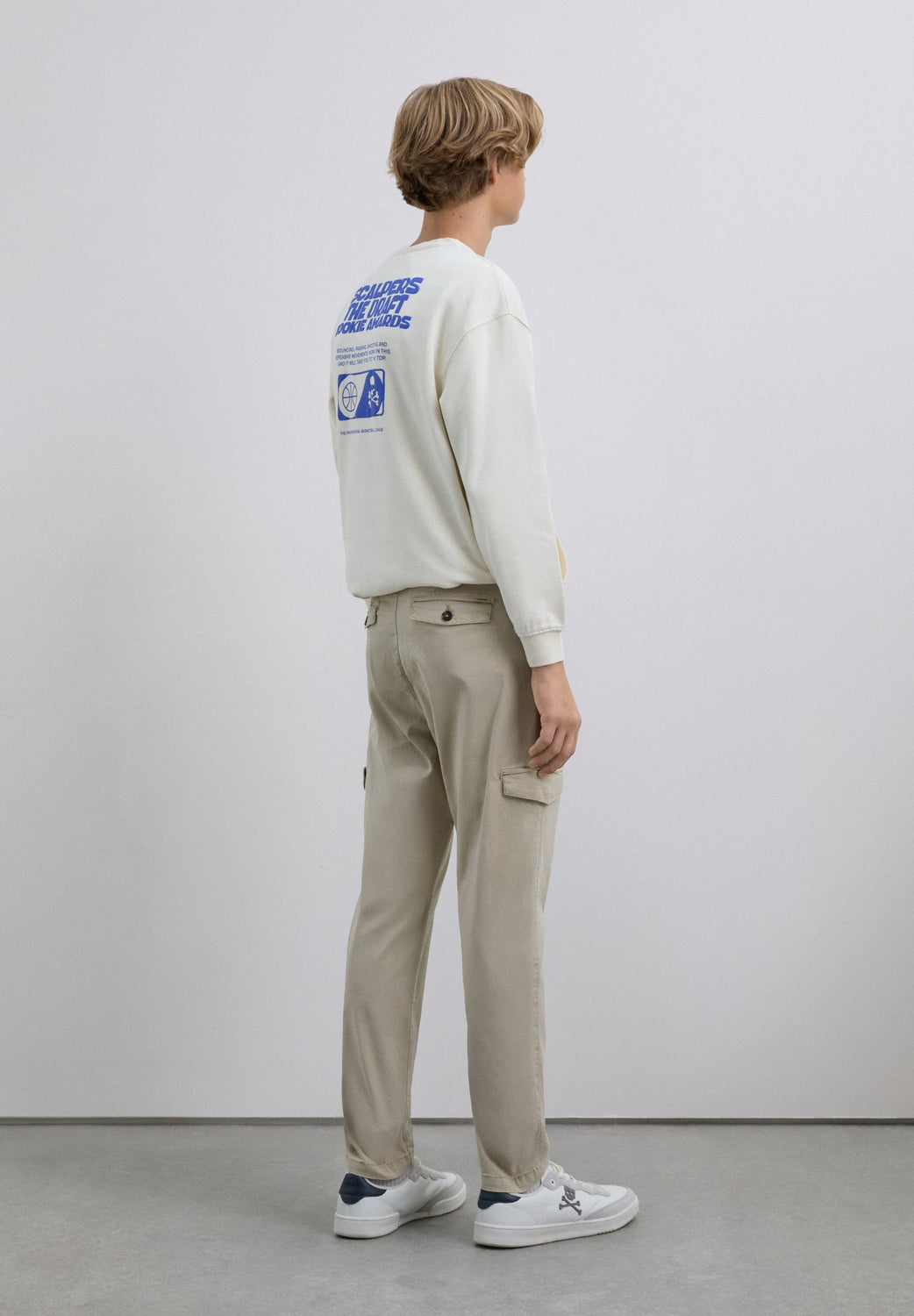 Cargo trousers made of slightly stretch BCI cotton. Regular fit. Button and zip fastening. Front and back pockets. Belt loops at the waist and flap pockets on the leg.