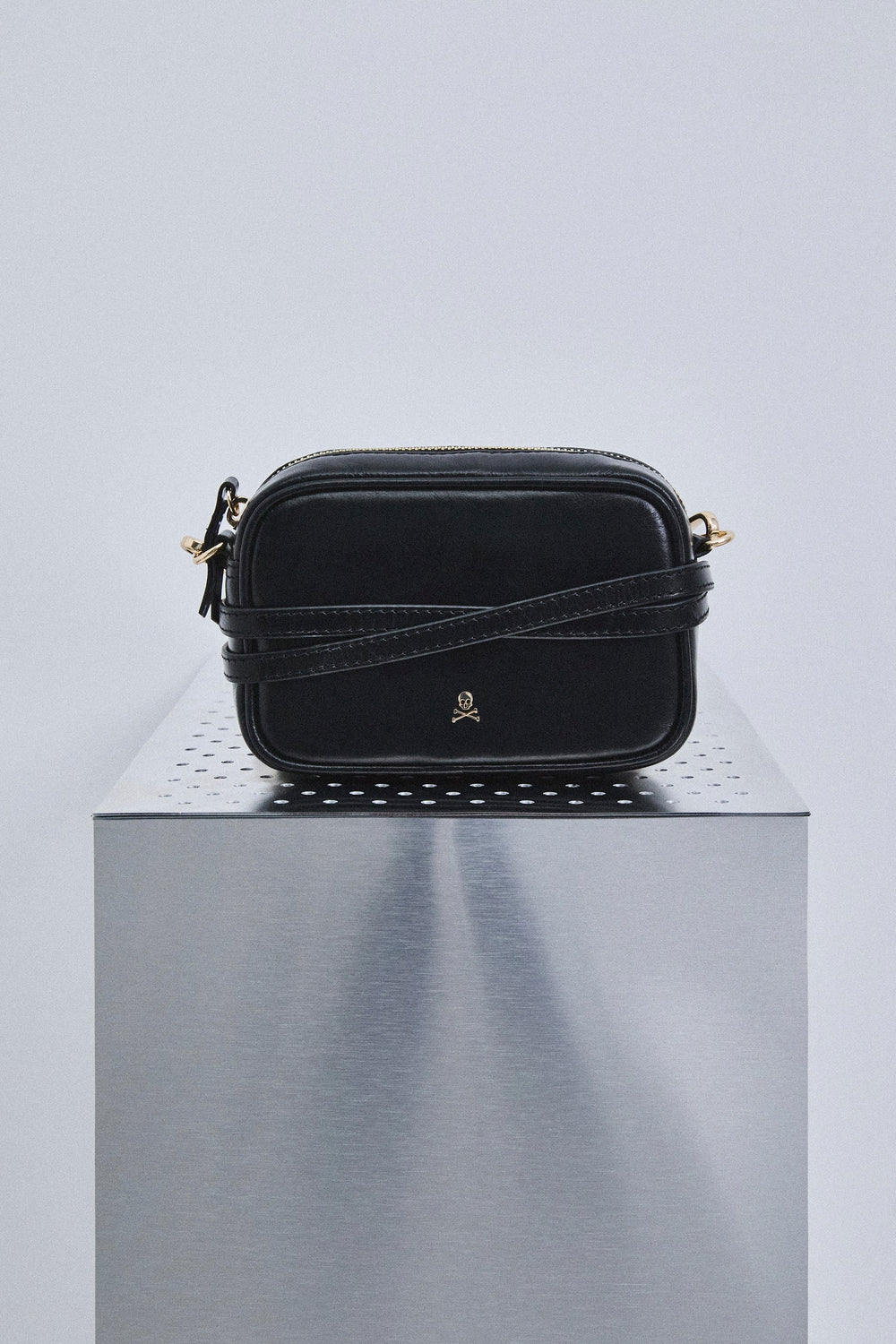 Small size bag. Made of 100% leather. Zip fastening. Long strap. Logo detail on the front.