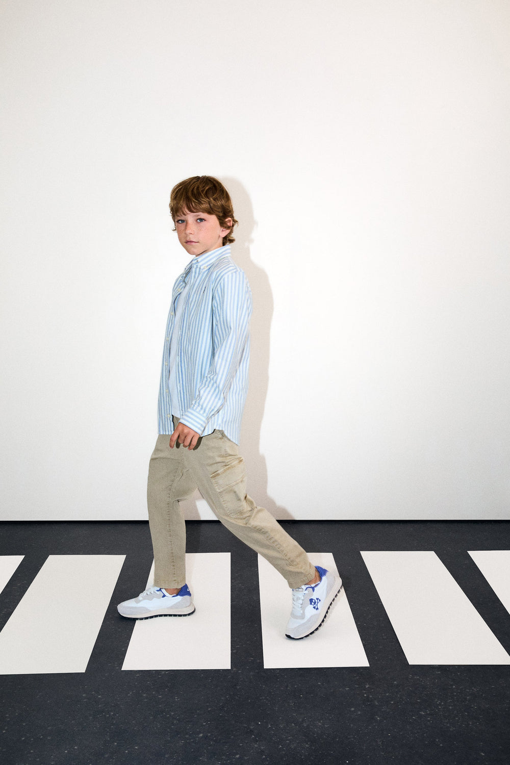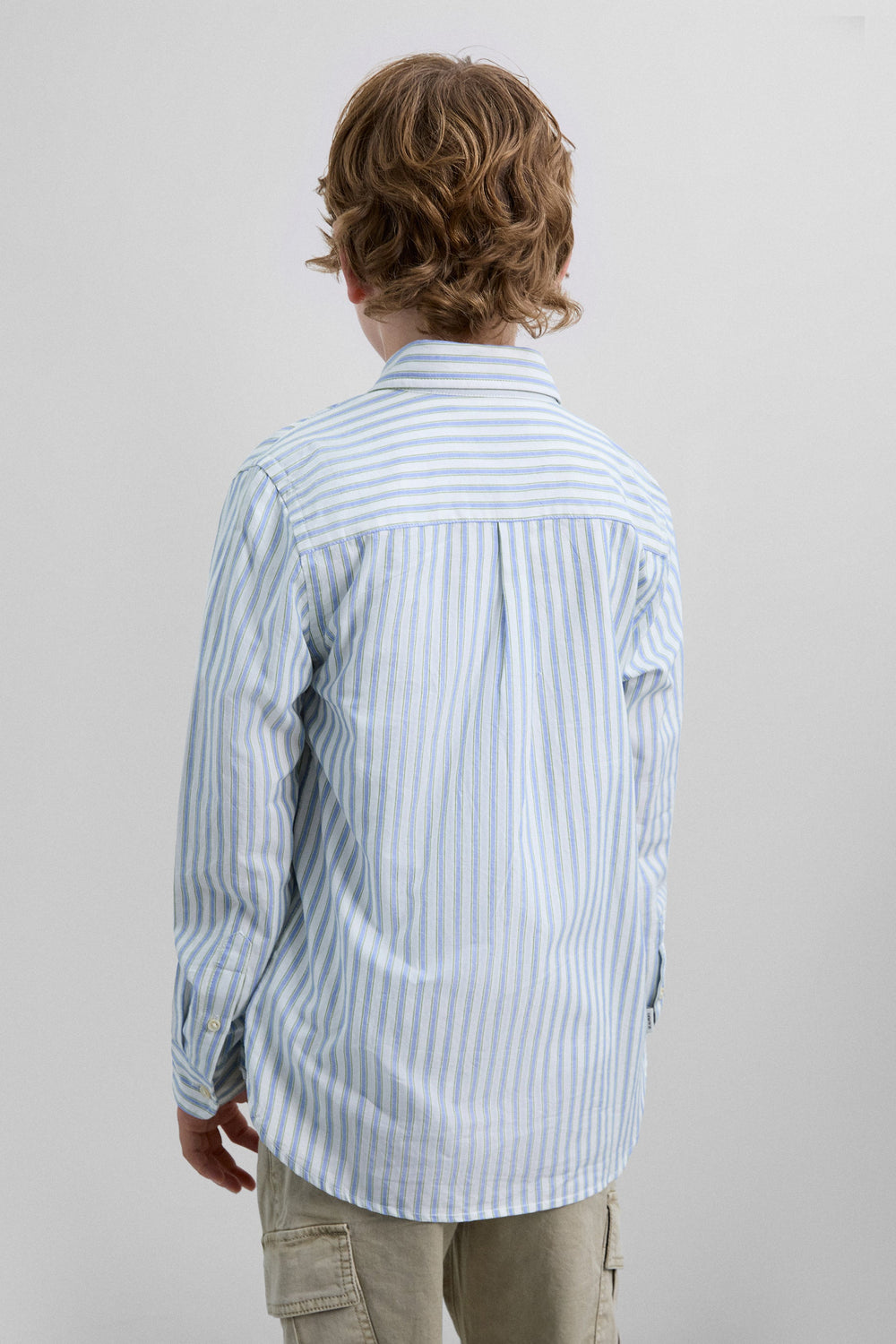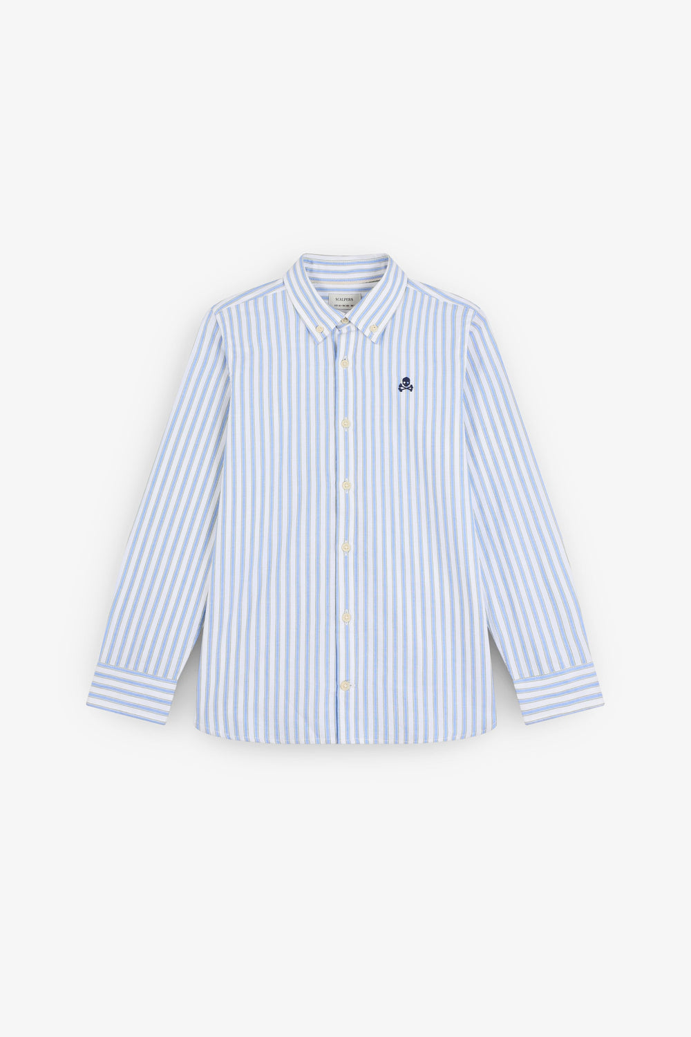 Shirt made of 100% BCI cotton. Stripe print. Classic collar. Contrast embroidered skull detail on the chest.