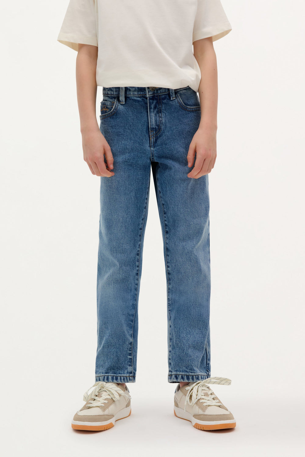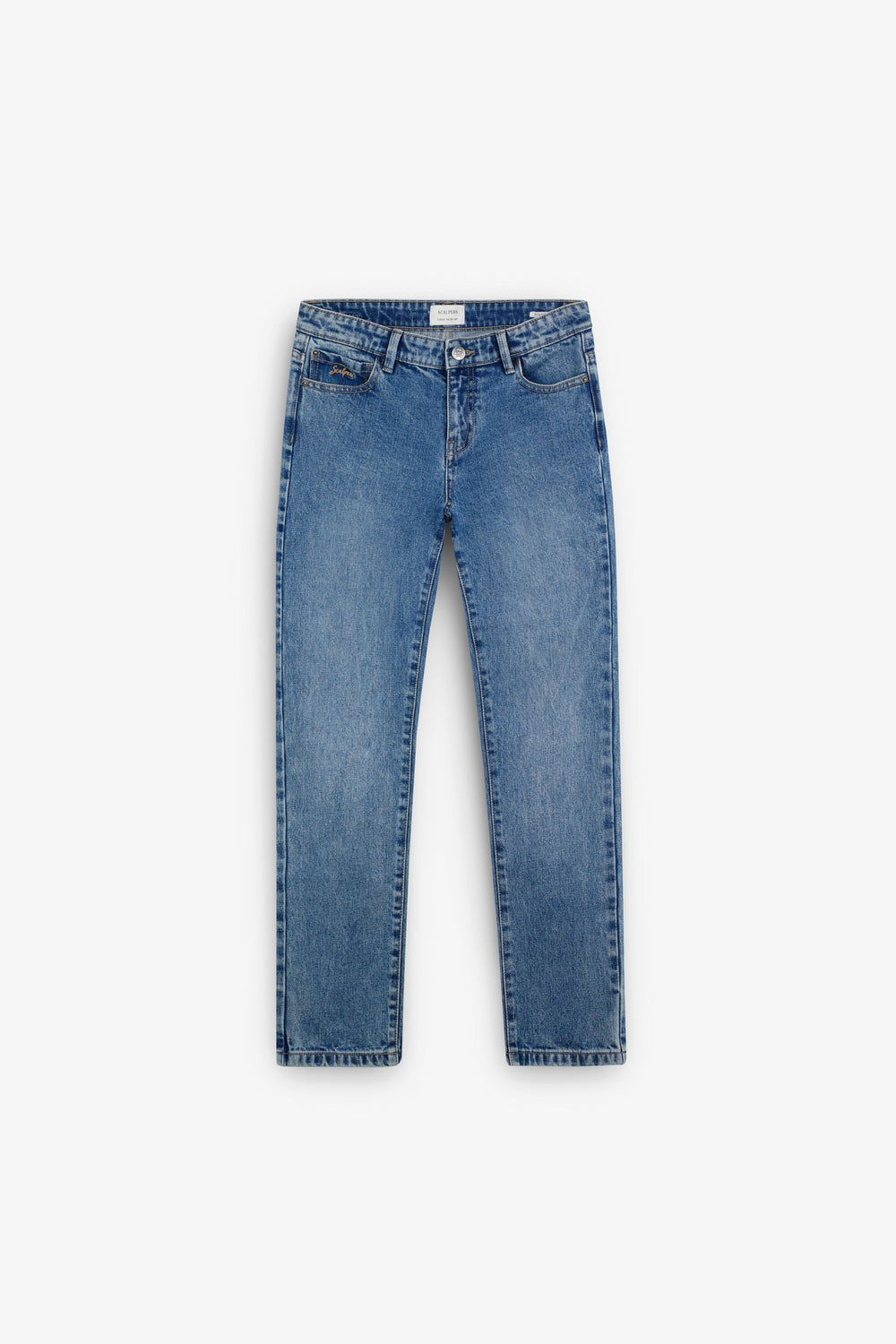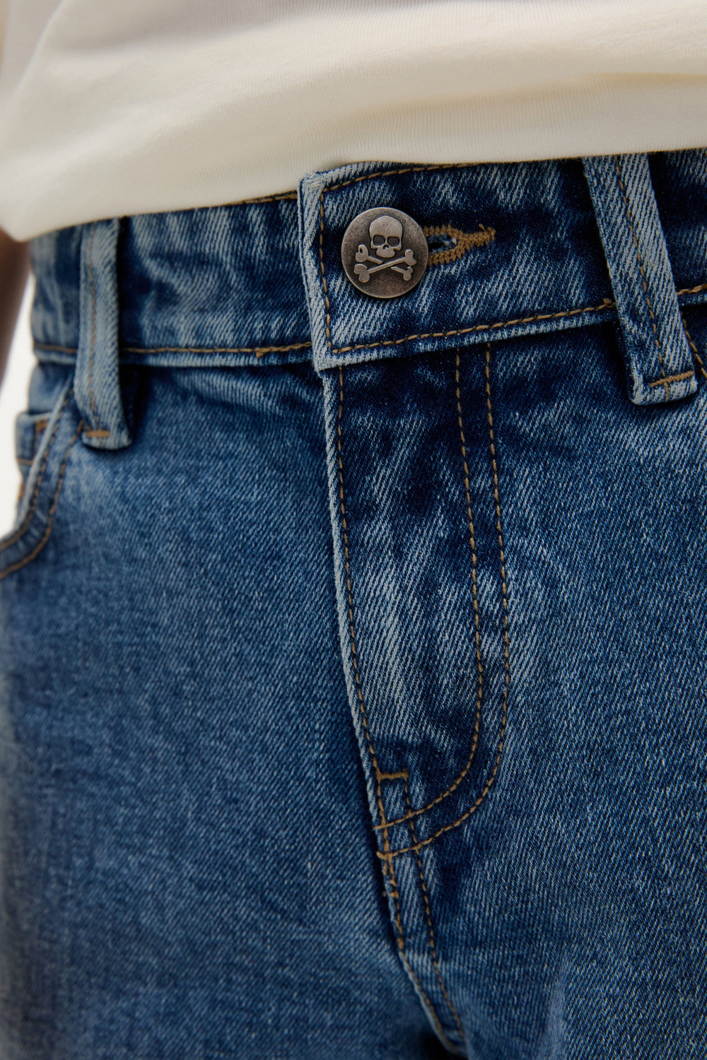 Jeans made of a cotton blend. Regular Fit. Front and back pockets. Button and zip fastening. Belt loops at the waist. Skull detail on button and logo label on back pocket.