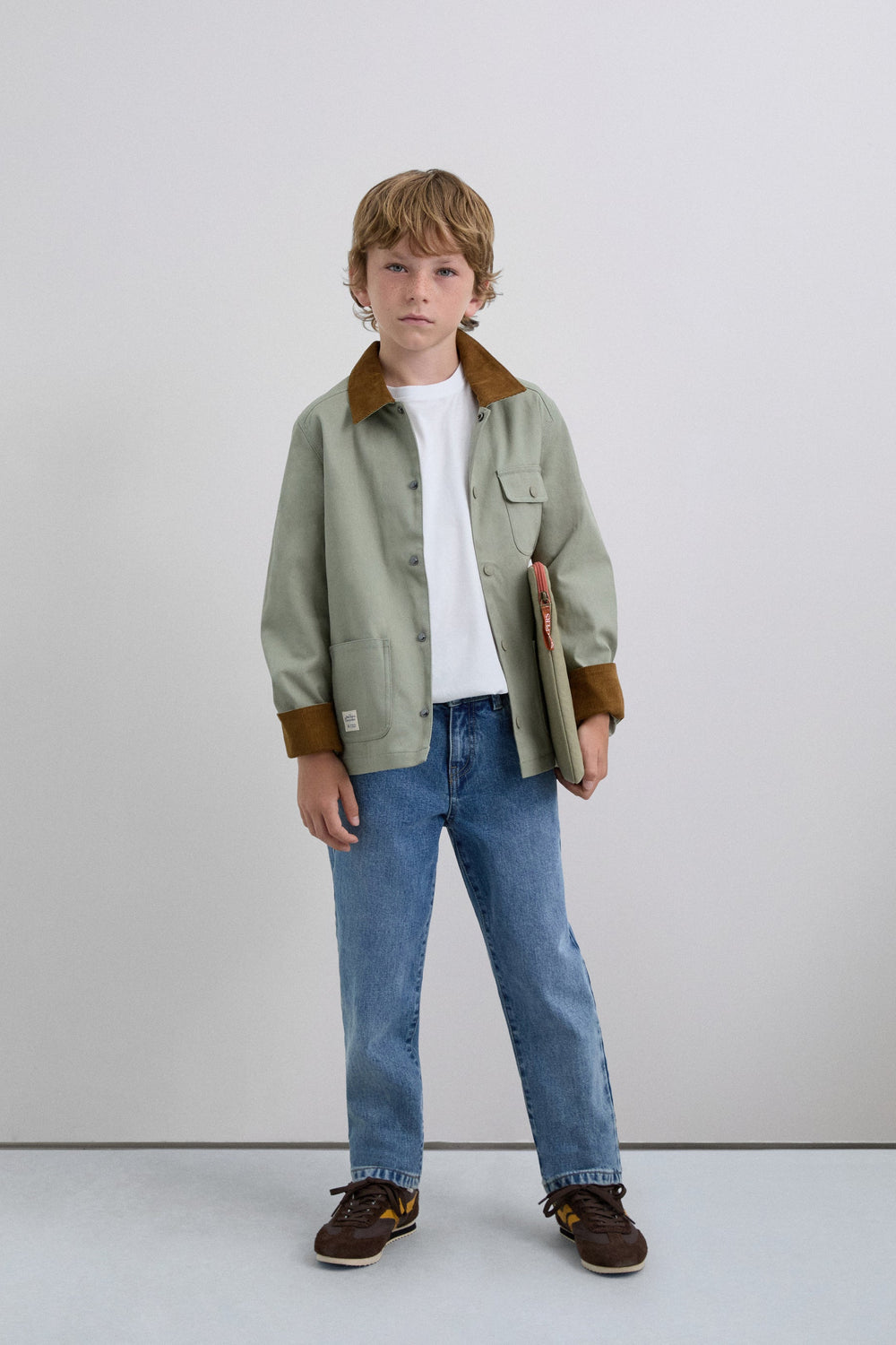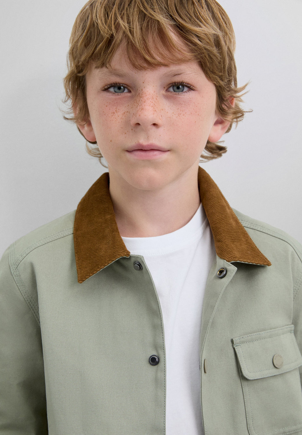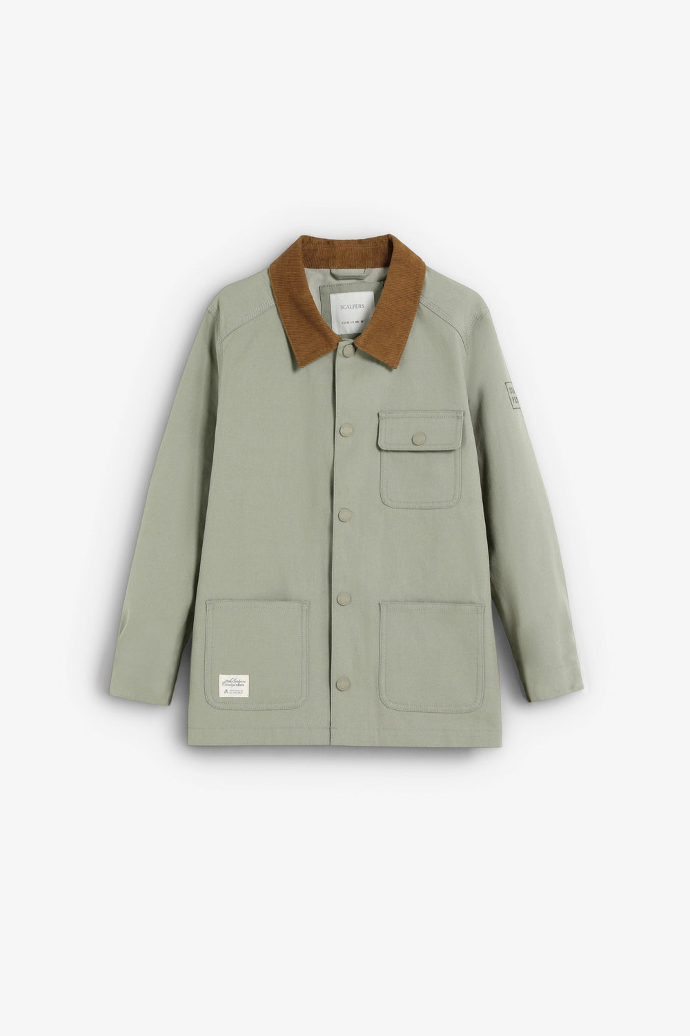 Jacket made of 100% BCI cotton. Contrast shirt collar. Long sleeves. Button and zip fastening. Front and chest pockets with button fastening. Logo label detail on the front pocket.