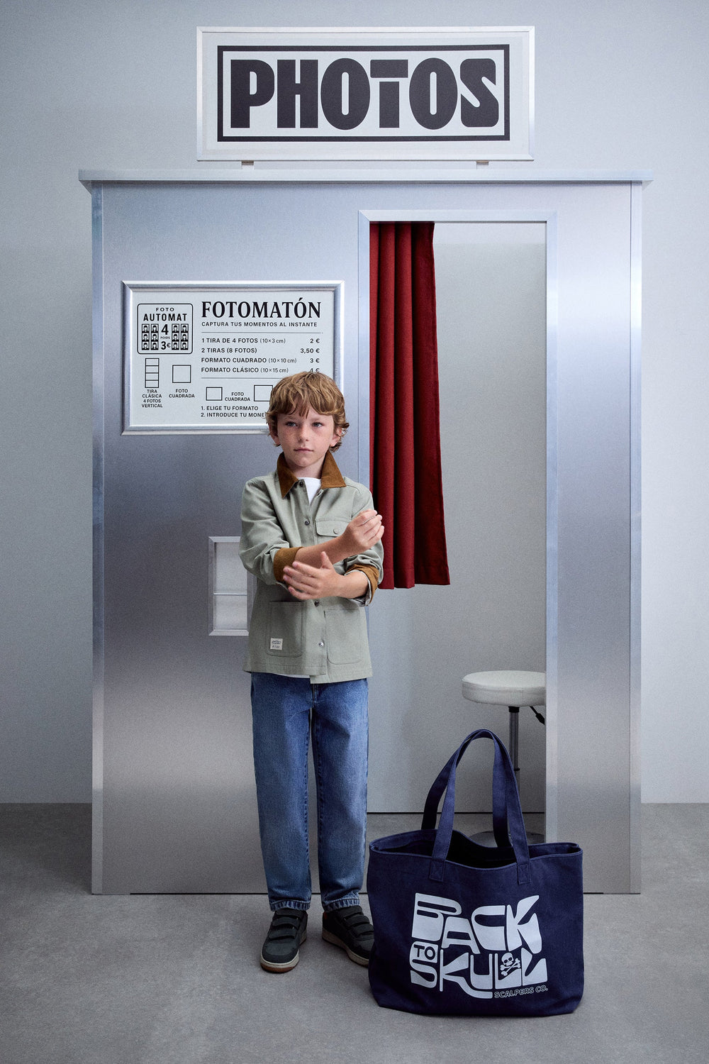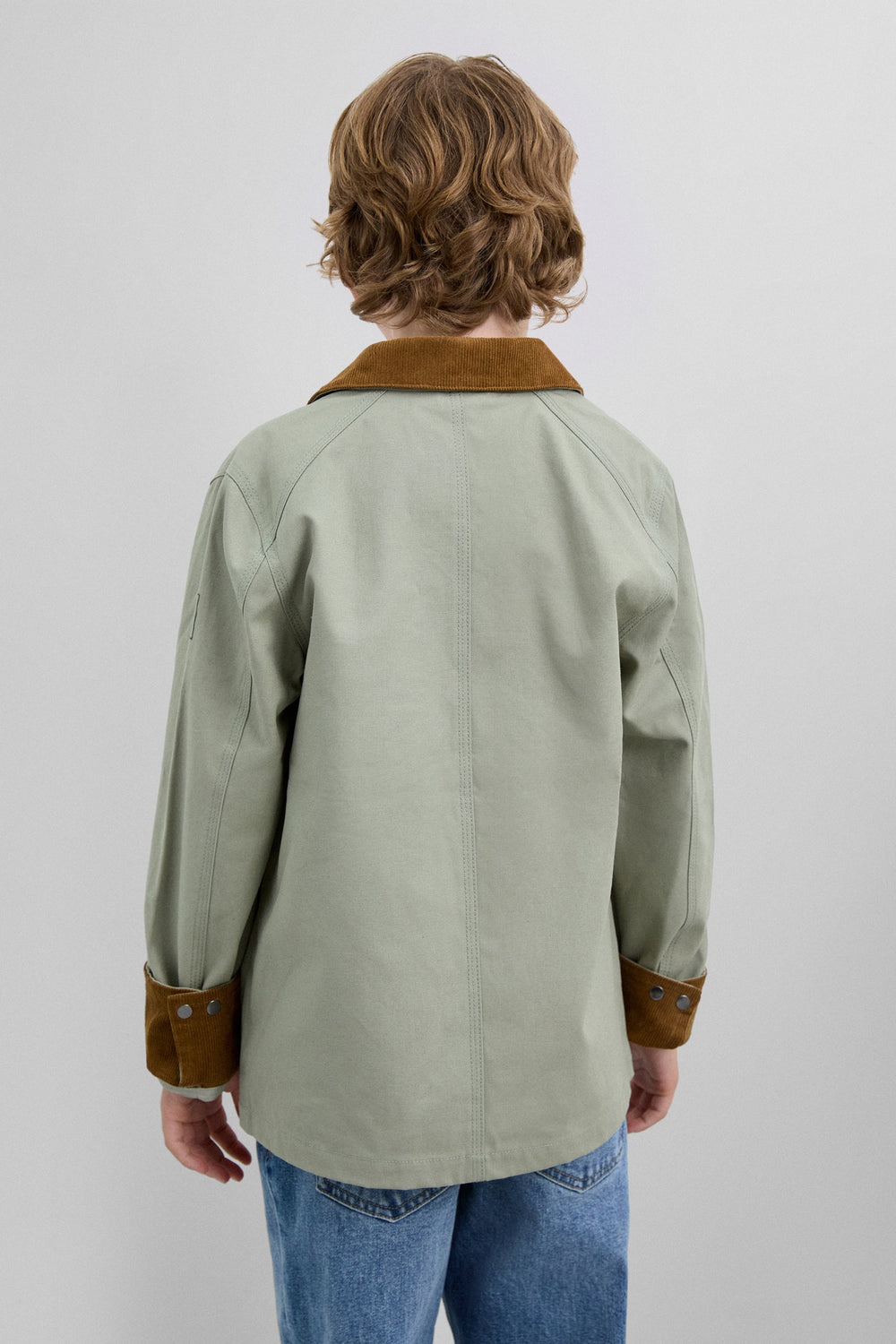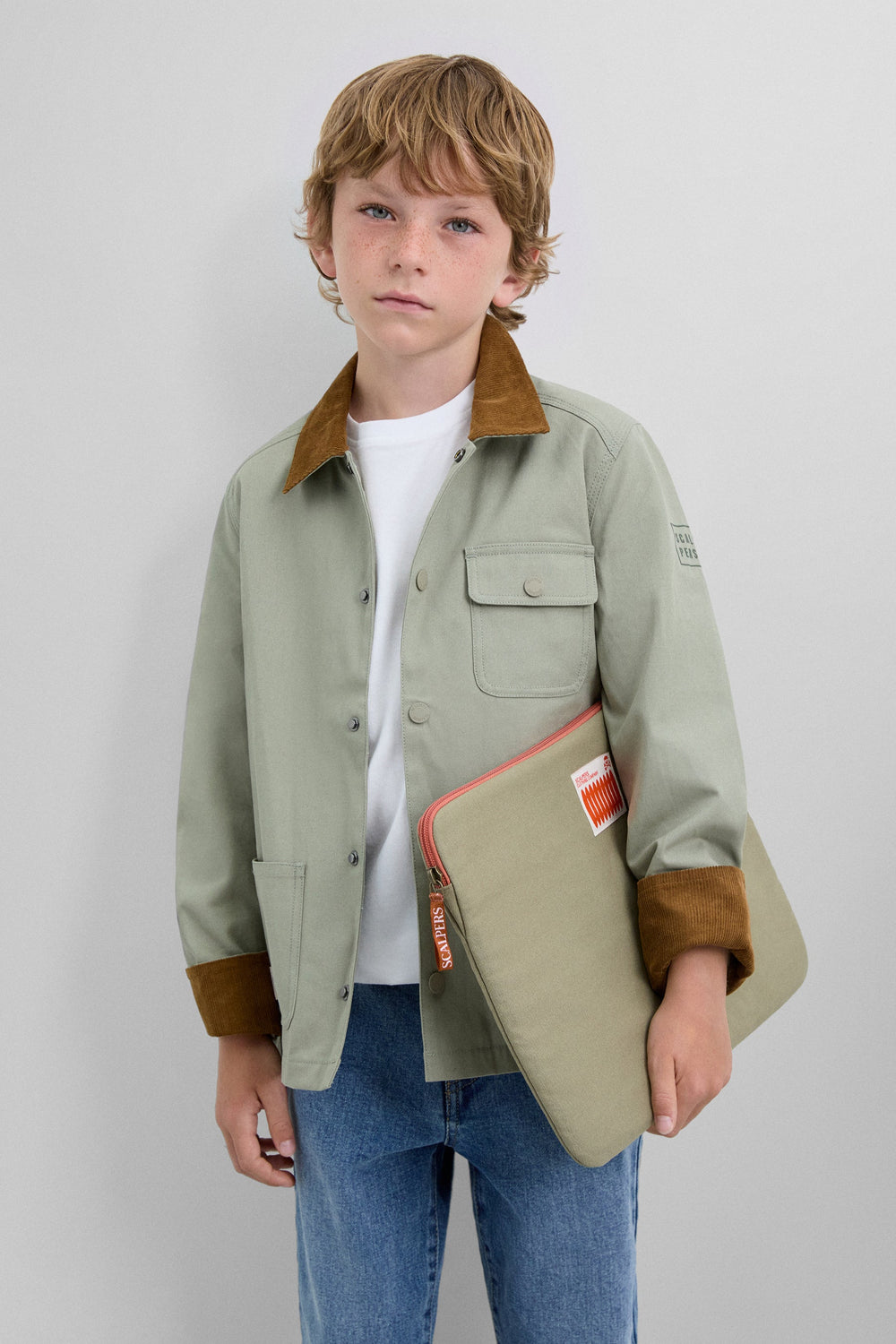 Jacket made of 100% BCI cotton. Contrast shirt collar. Long sleeves. Button and zip fastening. Front and chest pockets with button fastening. Logo label detail on the front pocket.