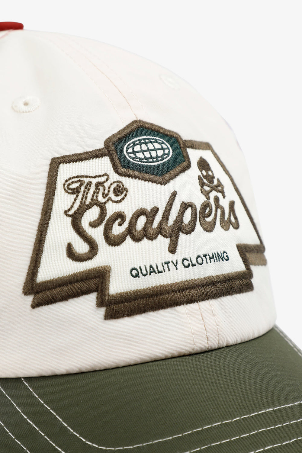 Three-tone cap made of 100% nylon. Adjustable back and front embroidered print with contrast skull. Logo label detail at the back.