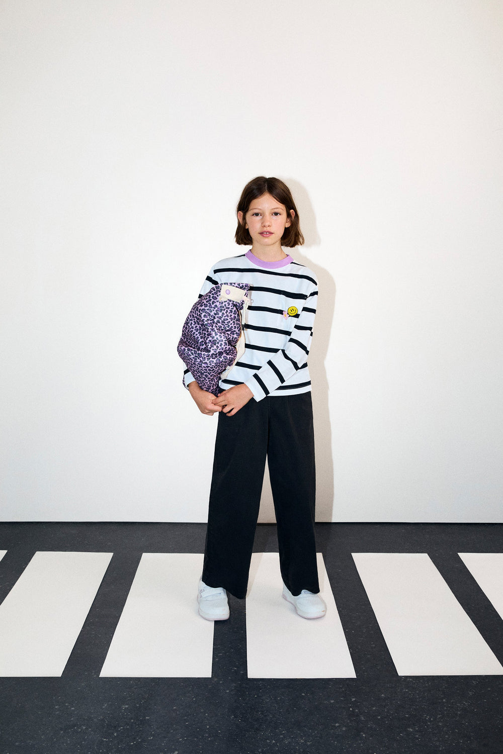 Striped T-shirt made of 100% BCI cotton. Regular fit, contrast round neck and long sleeves. Chest pocket detail and logo label on back.