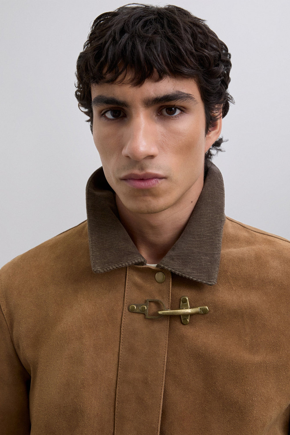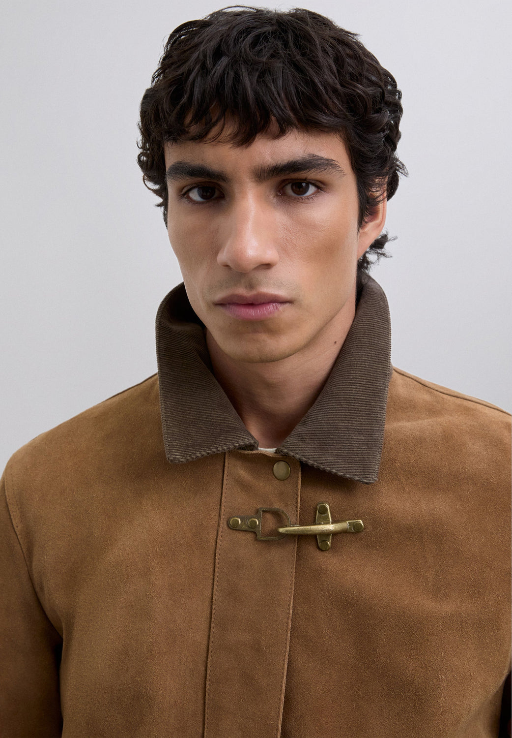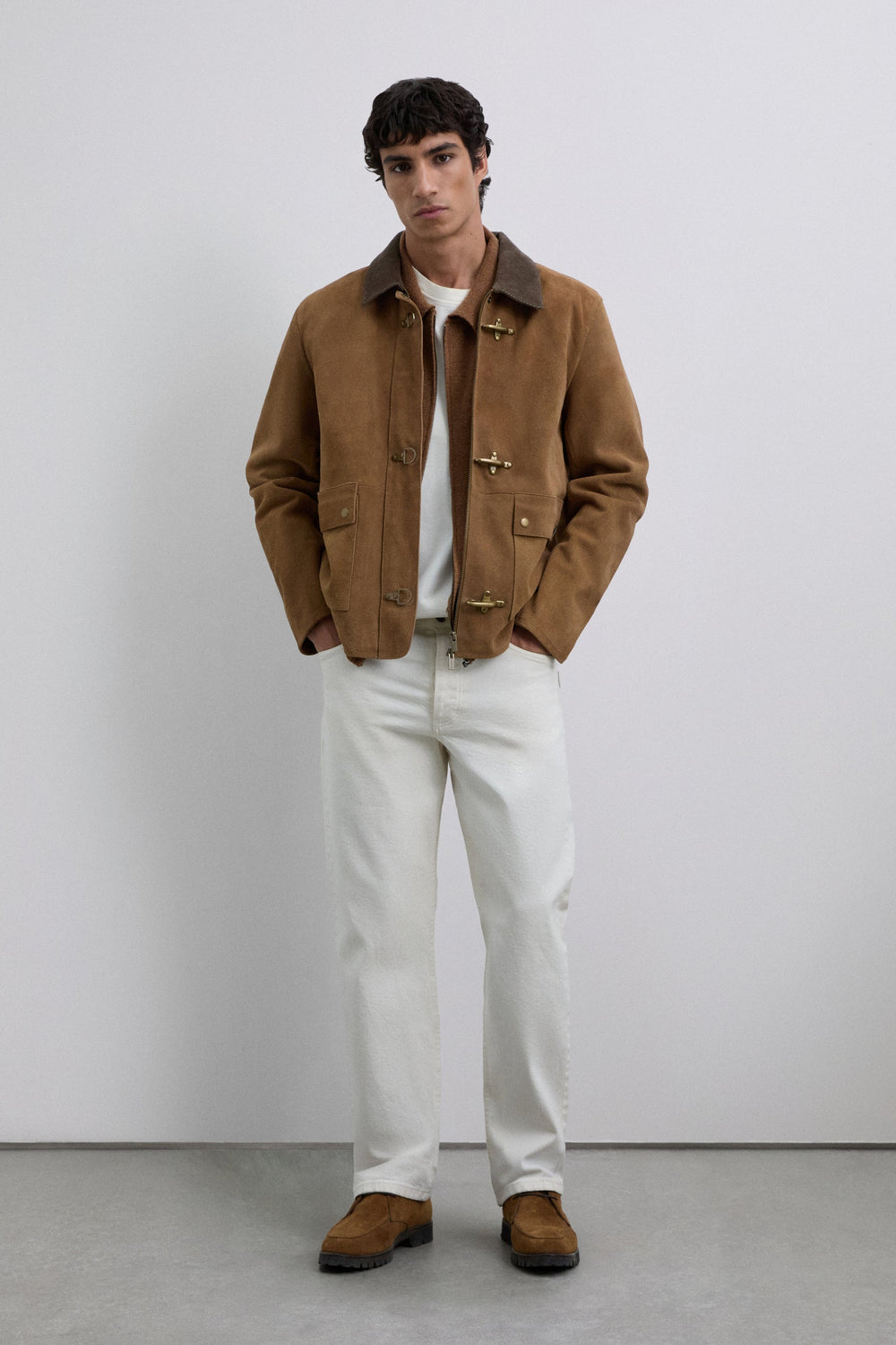 Jacket made of 100% leather. Long sleeves. Corduroy collar. Metal toggle and zip fastening at front. Two buttoned patch pockets.