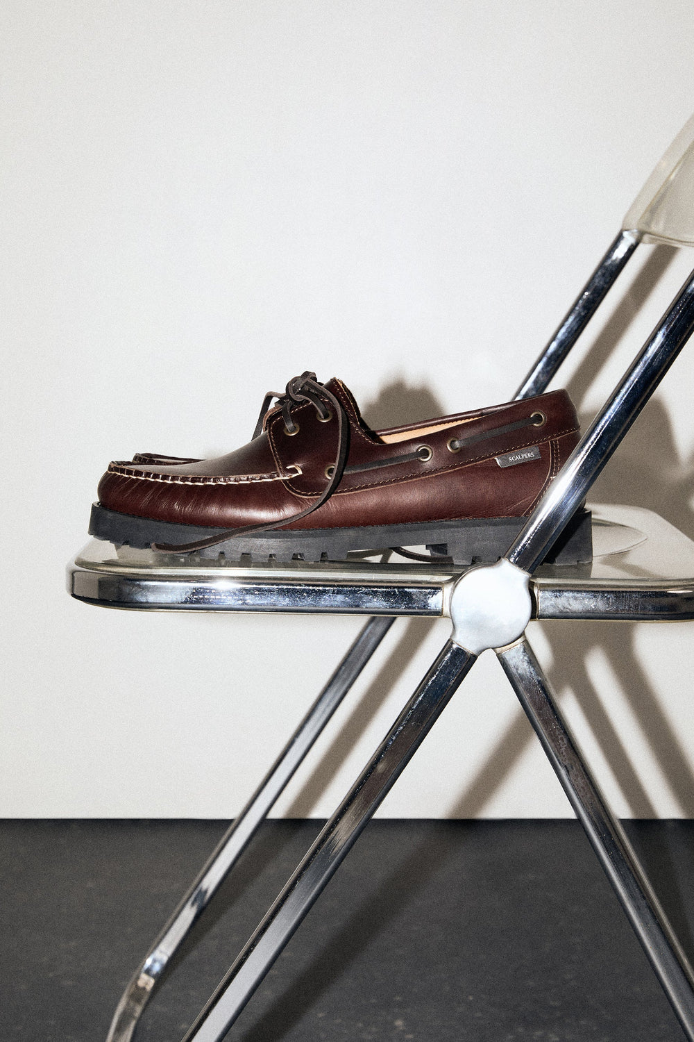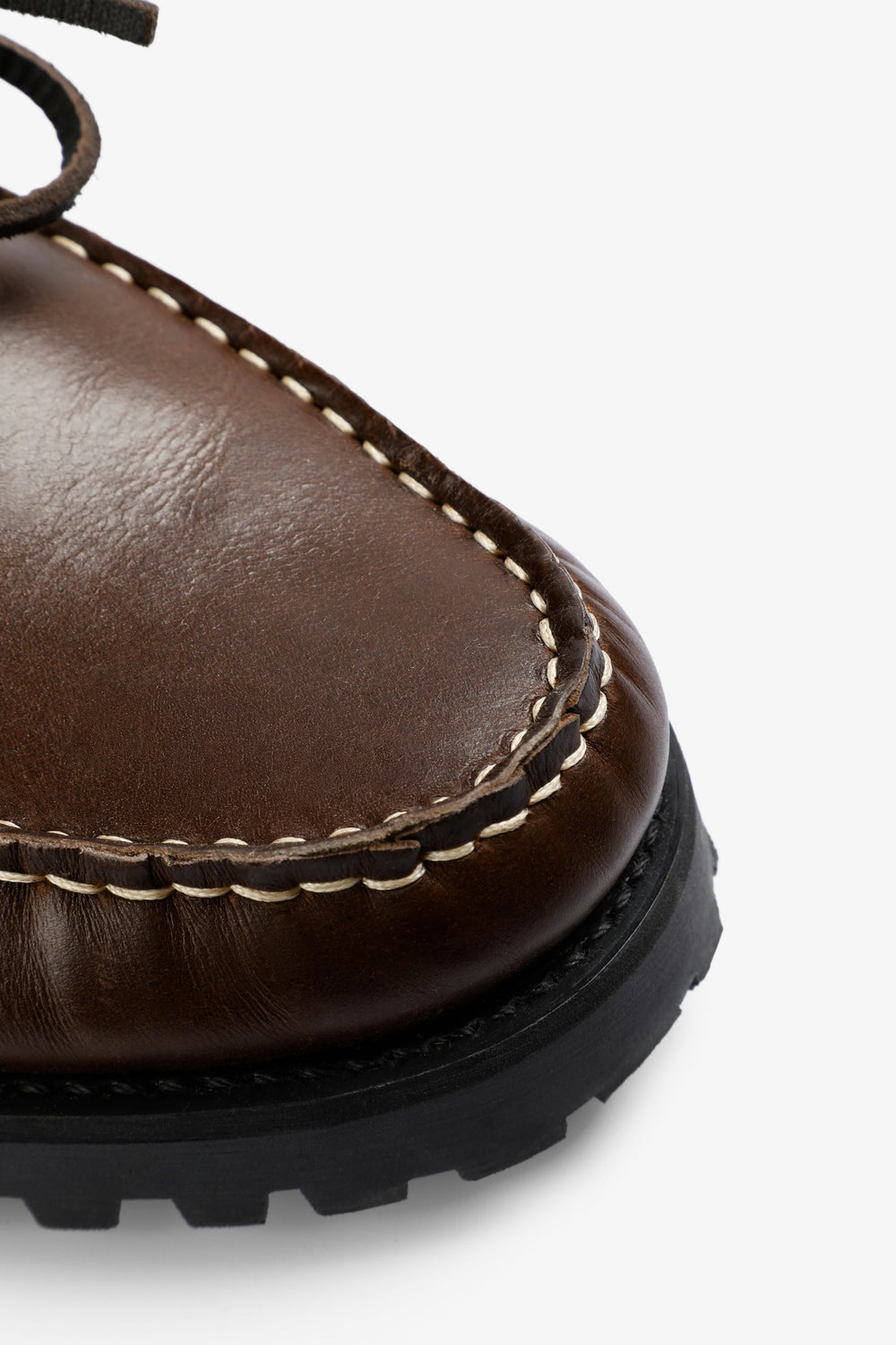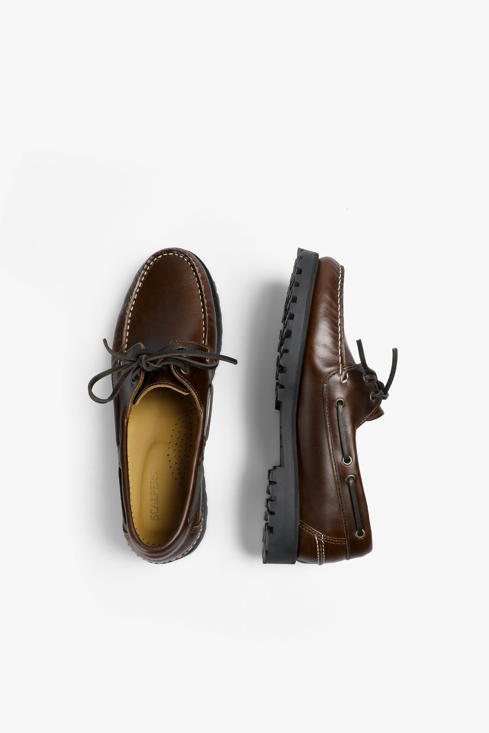 Deck shoes in a leather blend. Lace-up fastening and chunky track sole. Side label