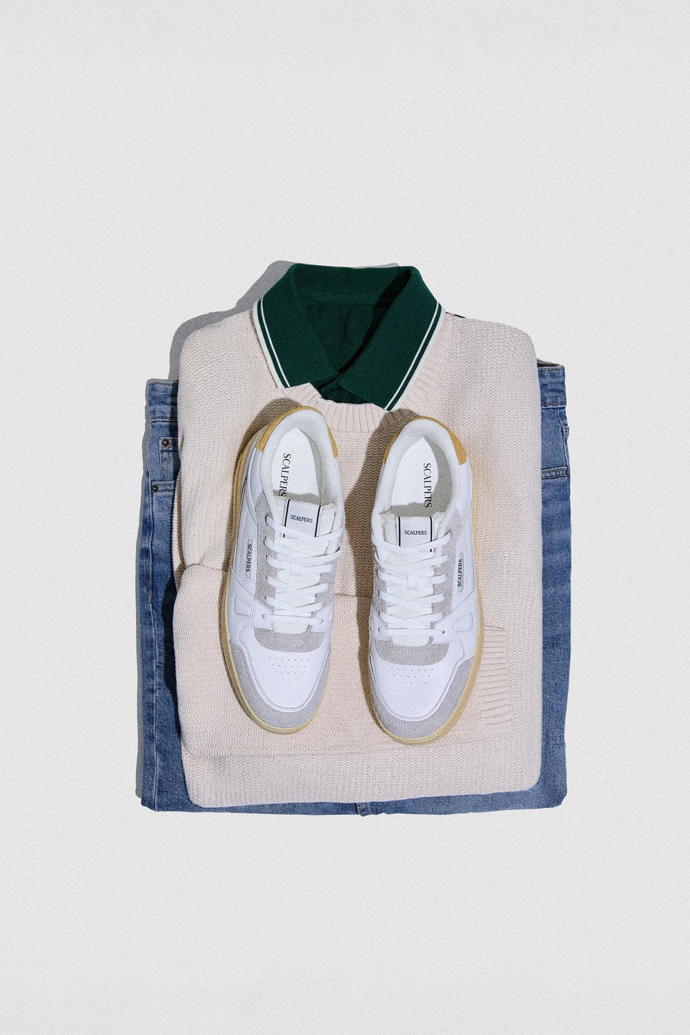 Leather sneakers. Contrast TPR sole. Contrast heel detail and side logo. Logo label detail on tongue.