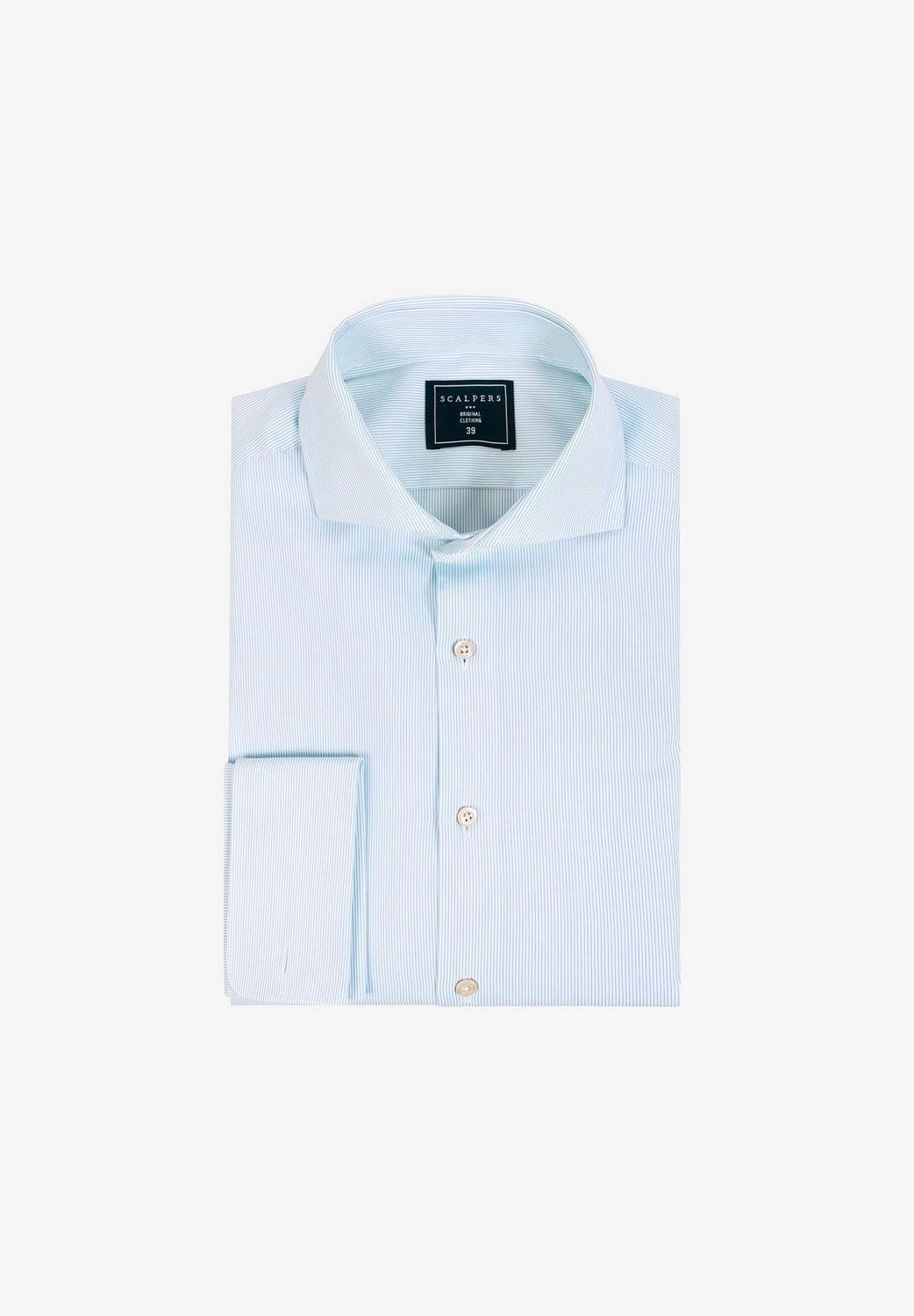 Dress shirt made of 100% cotton. Slim fit with darts, Italian collar with collar stays and button fastening. Long sleeves with double cuffs.