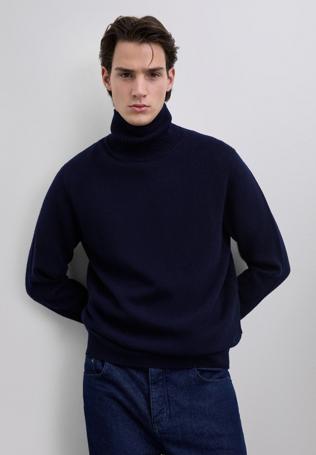 Sweater made of a wool and cashmere blend. High collar. Long sleeves. Ribbed trim.
