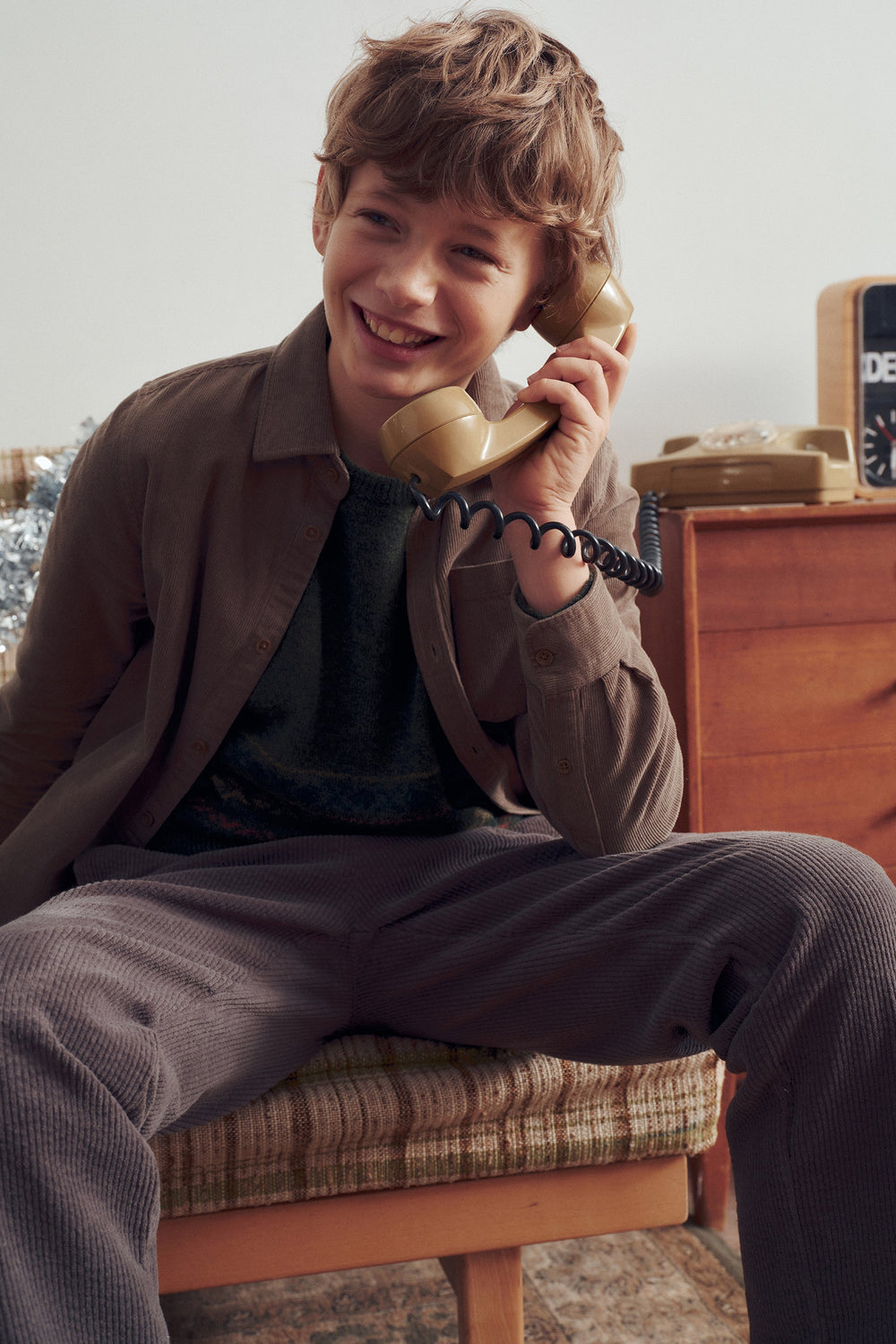 Corduroy overhemd van 100% BCI-katoen. Regular fit. Knoopsluiting. Lange mouwen met manchetten afgewerkt met knoop. Geborduurd ton sur ton doodshoofd op de borst.