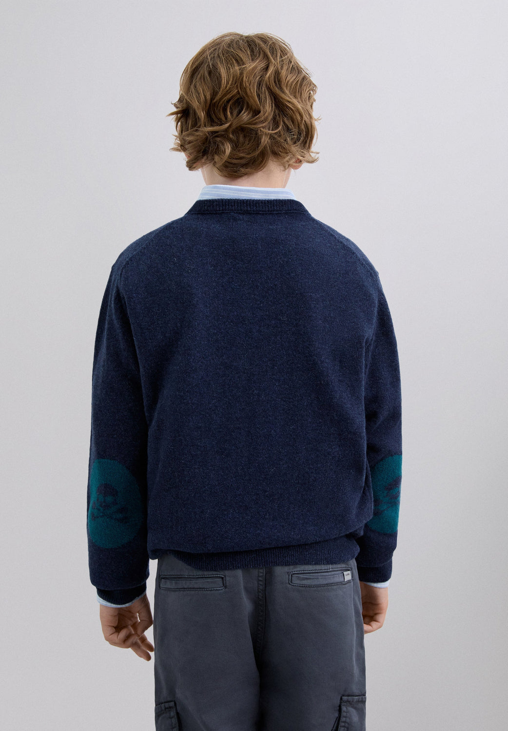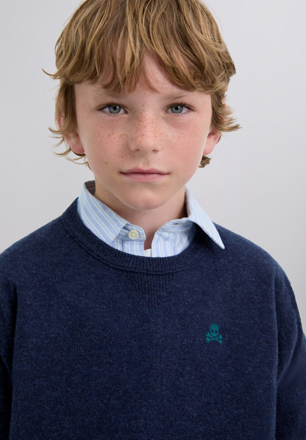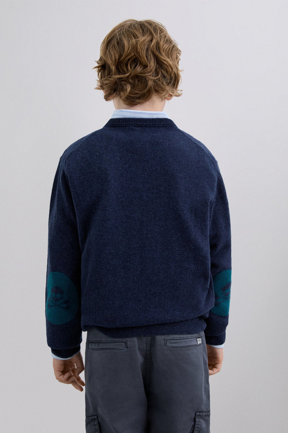 Trui gemaakt van wol- en polyamidemix. Regular fit. Ronde hals. Lange mouw. Geborduurd contrasterend doodshoofd. Ribboorden Contrasterend doodshoofd op de elleboog.