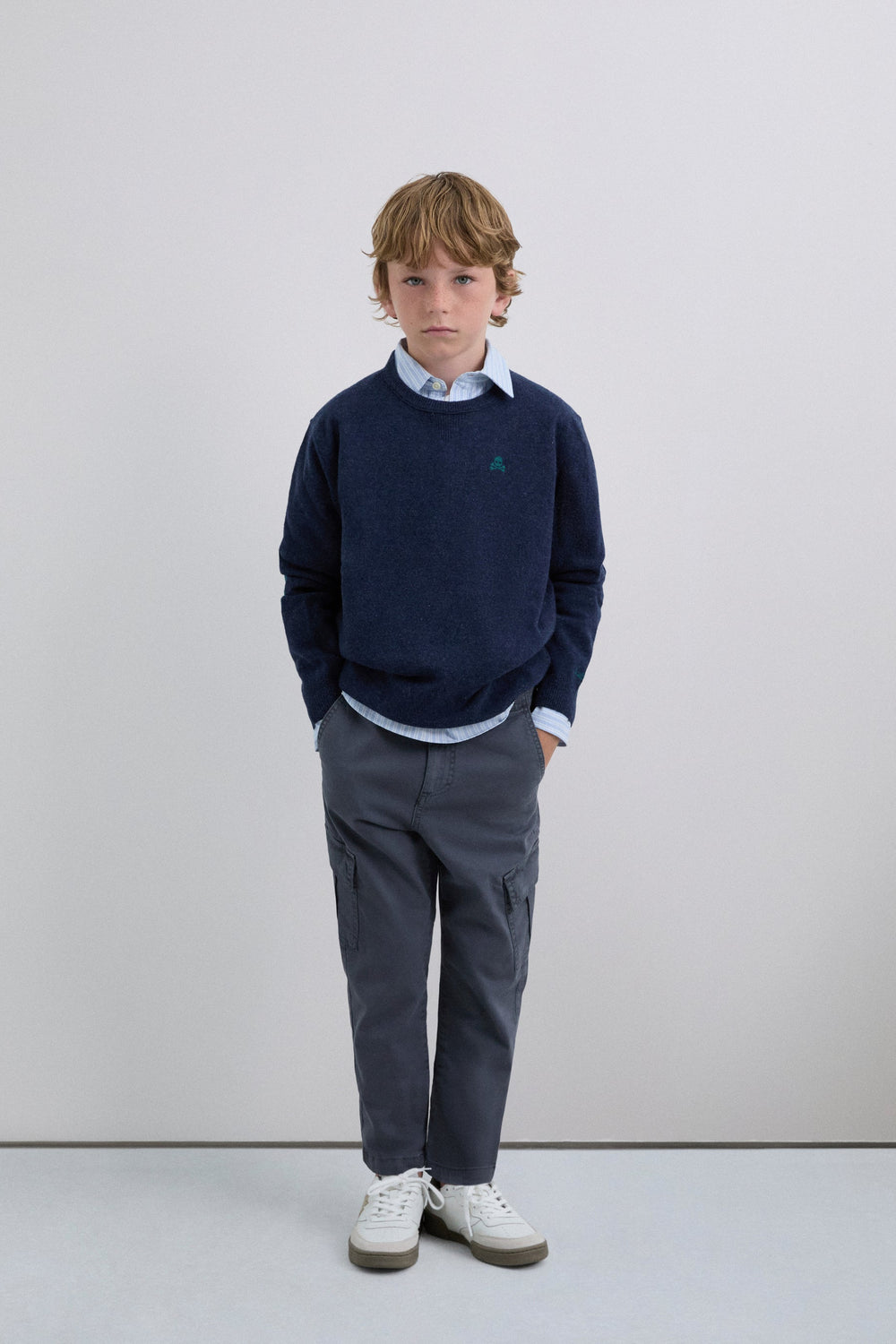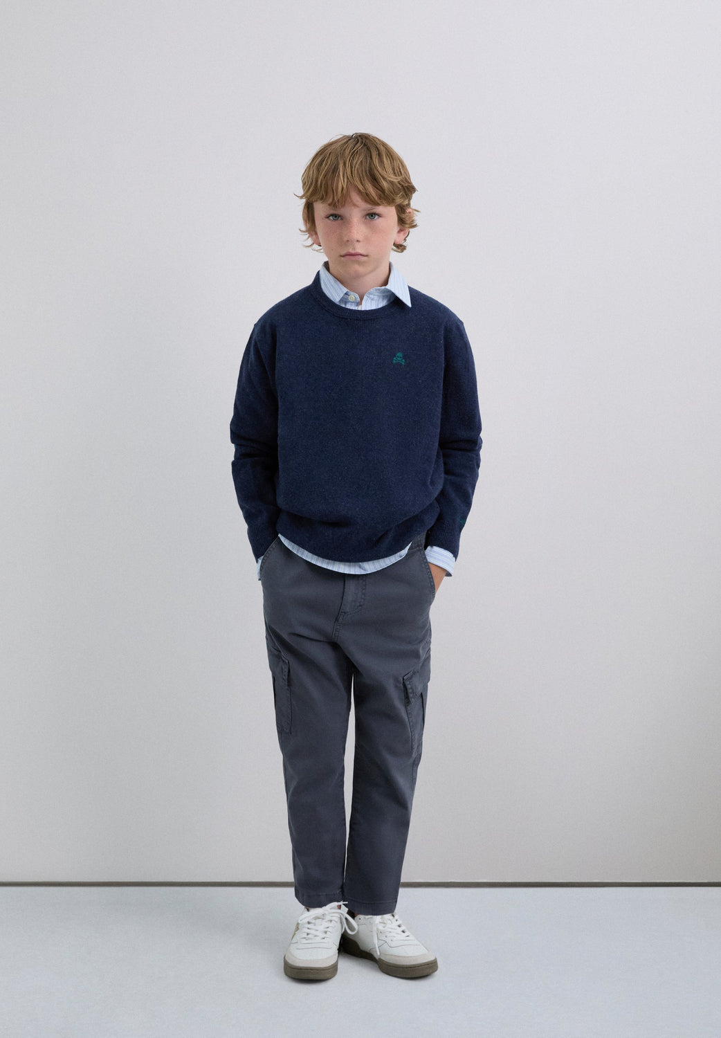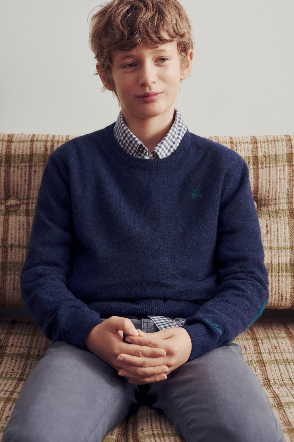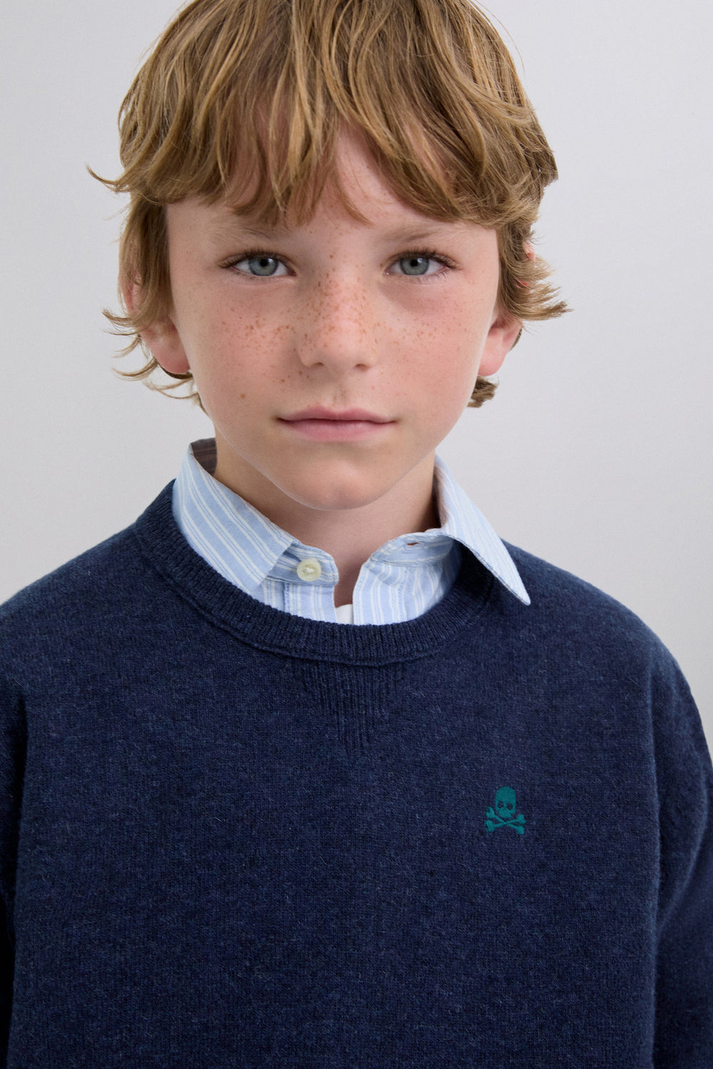 Trui gemaakt van wol- en polyamidemix. Regular fit. Ronde hals. Lange mouw. Geborduurd contrasterend doodshoofd. Ribboorden Contrasterend doodshoofd op de elleboog.