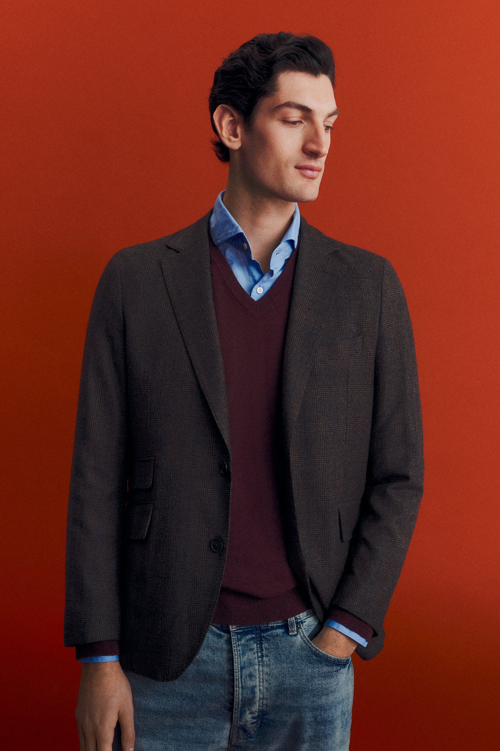 Blazer van 100% wol. Regular fit. Ruitjesmotief. Kraag met haakrevers. Knoopsluiting. Klepzakken en ticketzakje. Lange mouw met manchet en knopen.