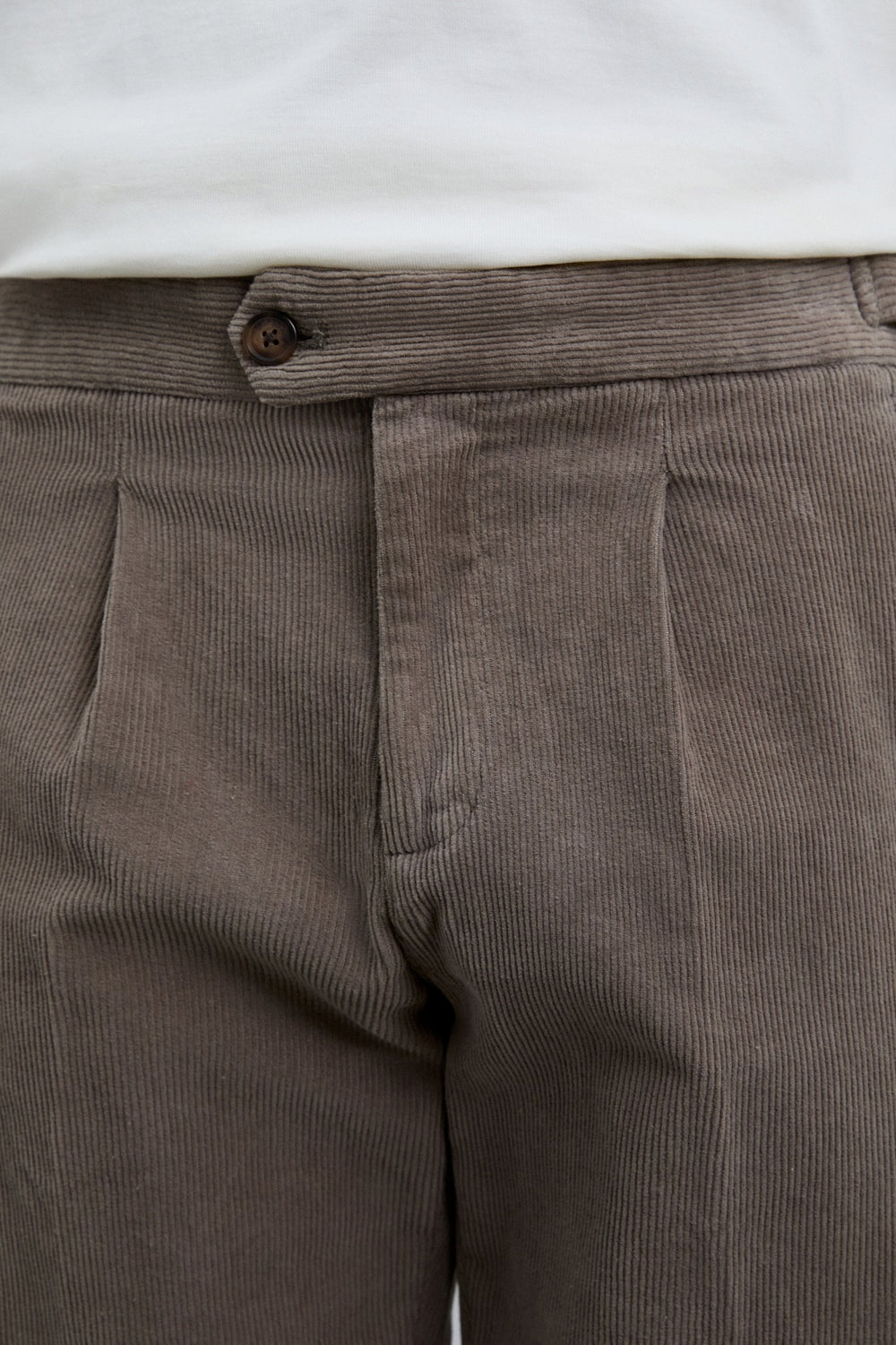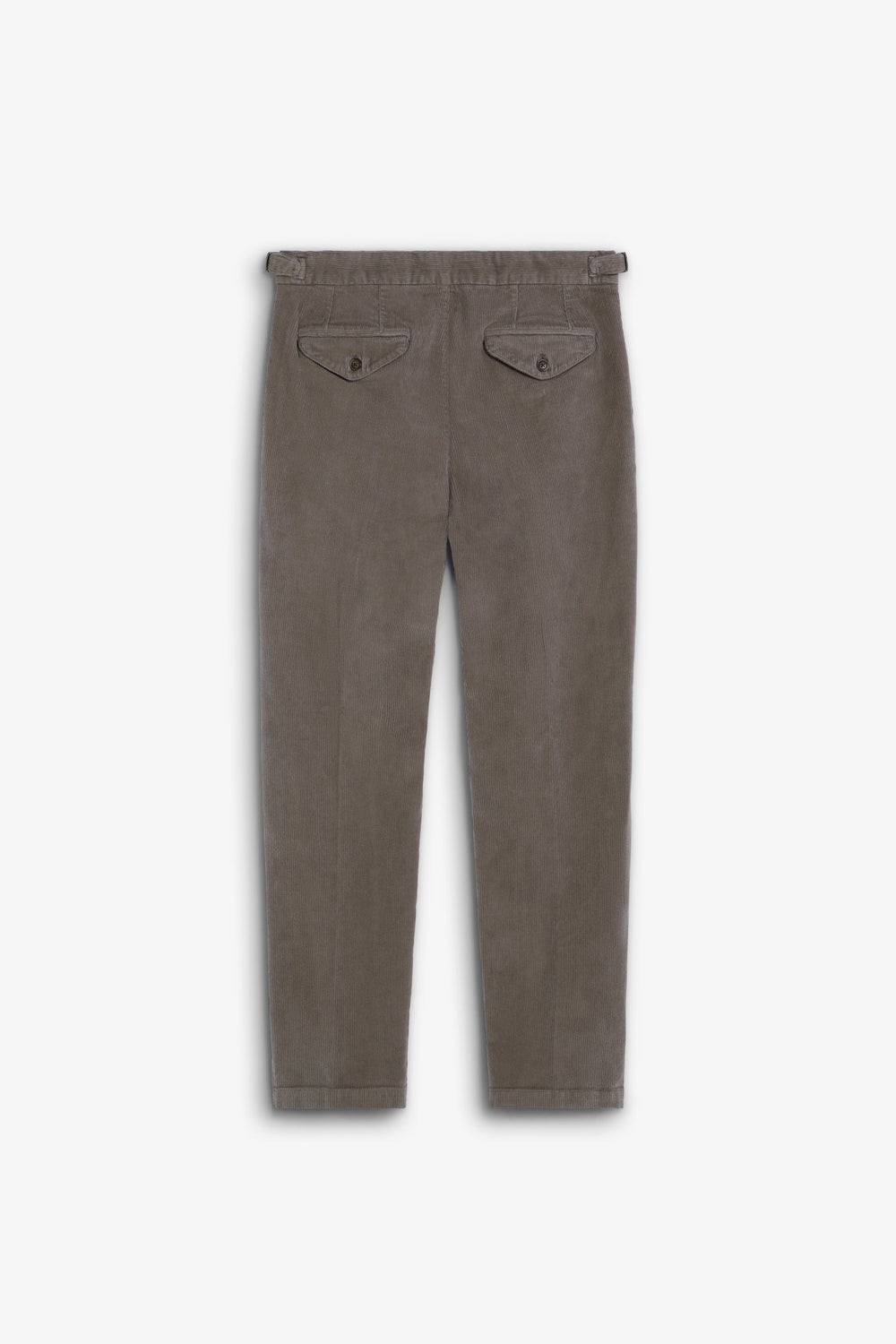 BCI-katoenen corduroy broek met bandplooi. Slim fit. Metalen verstellers aan de zijkanten van de tailleband, knoop- en ritssluiting. Twee voorzakken en twee achterzakken met knoopsluiting.