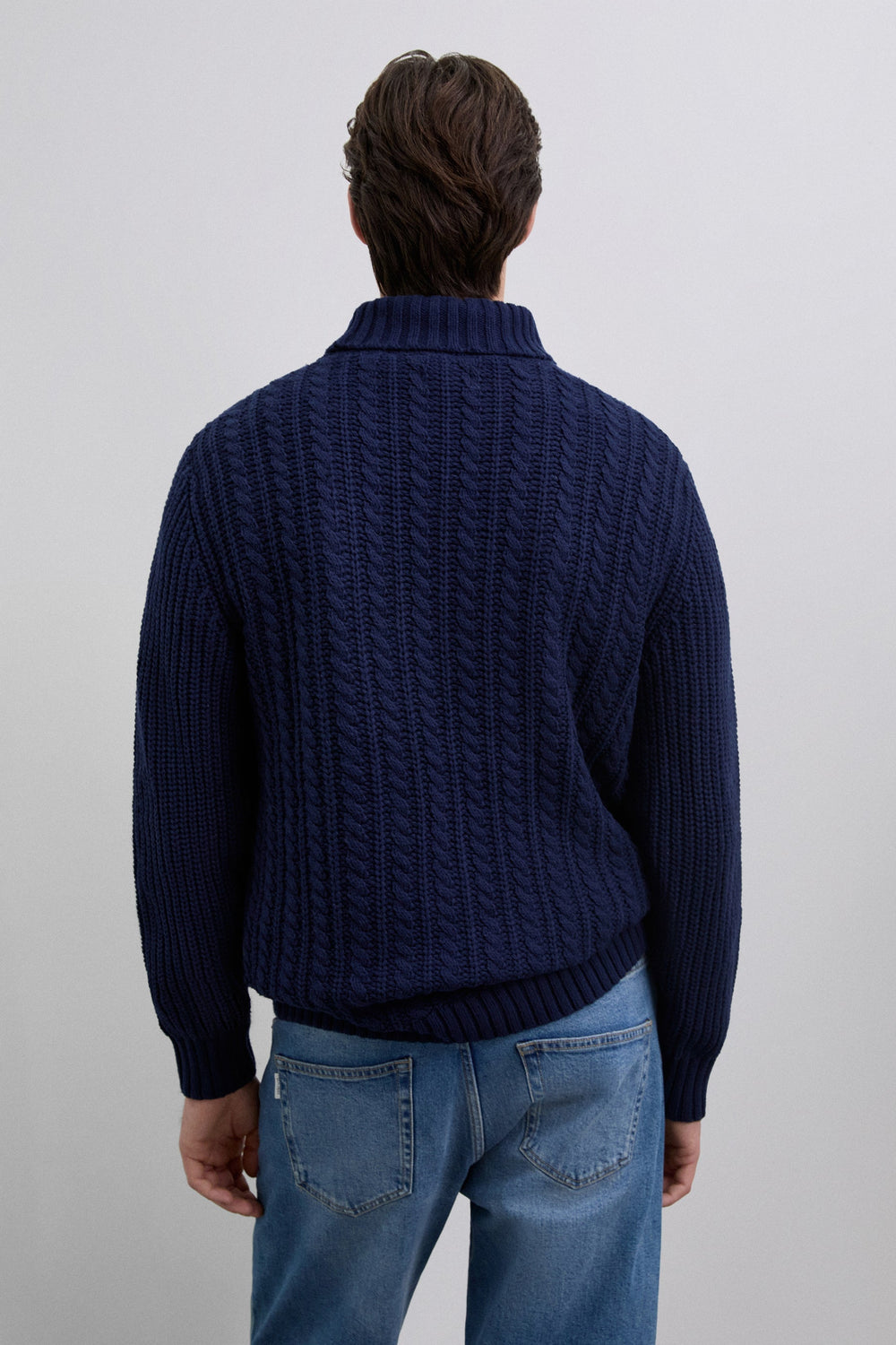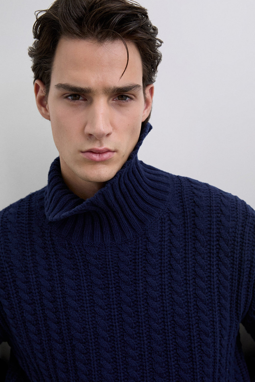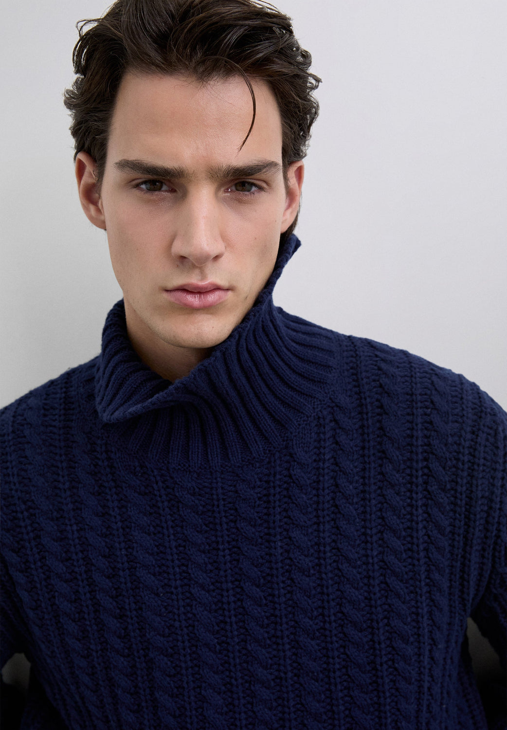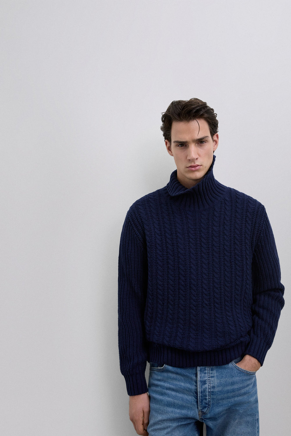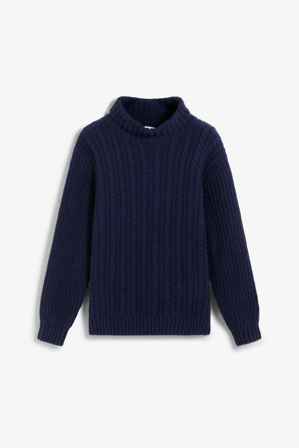 Gevlochten tricot trui. Hoge kraag. Lange mouwen. Regular fit.